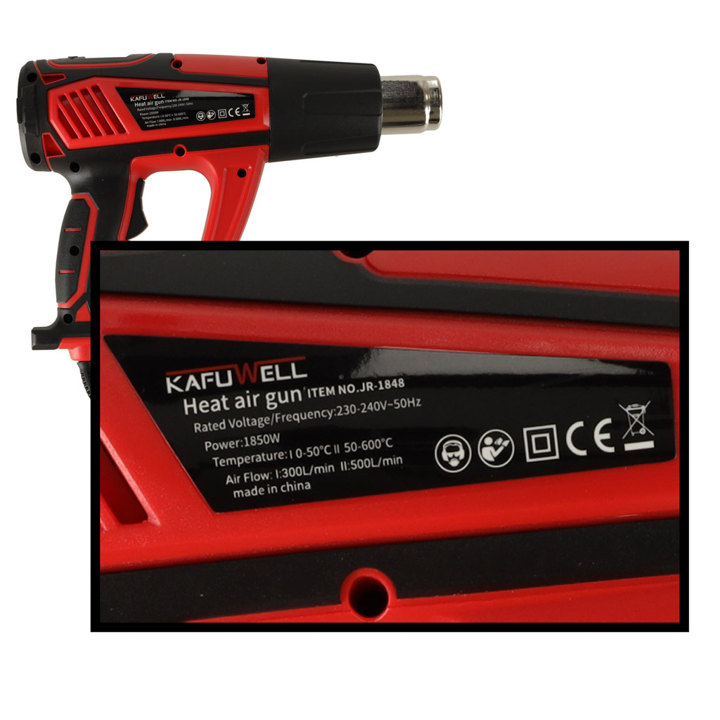 Электрическая метка Kafwell с регулированием температуры 0-600 градусов C воздушный поток 300-500 л/ мин + 4 заменяемые кончики 1850W h1>