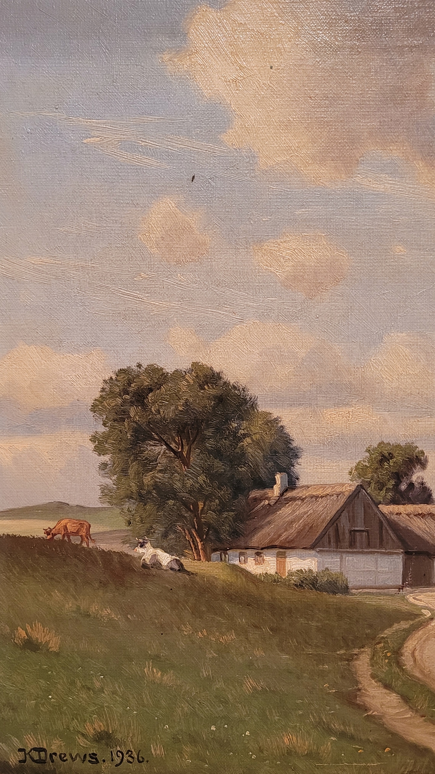 КАИ ДЖЕППЕ ДРЮС (1884 - 1964) - известный и уважаемый датский художник. Котируются на аукционах Christies, Sothebys, Arcadja, Findartinfo, Artprice, Bruun Rasmussen и многих других порталах и аукционных домах по всему миру. Он продемонстрировал необычайные способности в передаче деталей и был известен своими очаровательными пейзажами. Большое место в его творчестве занимают и интерьерные мотивы. В своей работе он использовал множество псевдонимов, в том числе: ПОЛ РОНН, ТОРИНГ, ТОРНО. Его картины можно увидеть в датских музеях. Покупатели картин Кая Дрюса рассматривают его работы как удачное вложение капитала.