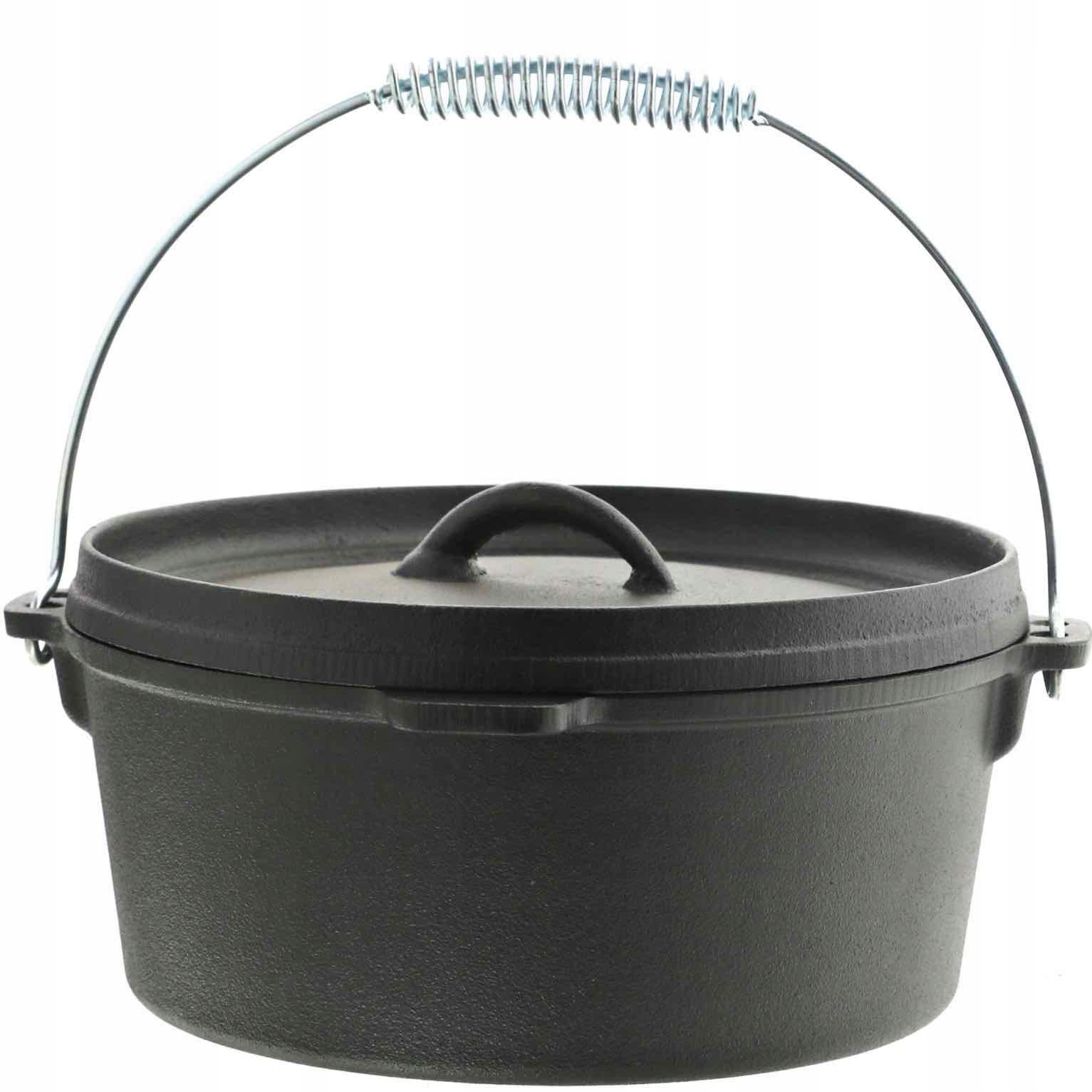 Чугунный казан с крышкой, идеально подходящий для подвешивания над огнем.