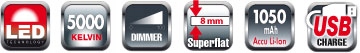 Kaiser 2455 — светодиодный просмотрщик, плоский, с регулировкой яркости подсветки и встроенным литий-ионным аккумулятором, заряжаемым через USB. Устройство с равномерной подсветкой, цветовой яркостью 5000К, позволяет точно воспроизводить цвета просматриваемых материалов. Имеет переключатель включения/выключения, плавную регулировку яркости, время работы от полностью заряженного аккумулятора: 1,5 часа, печатную линейку. Устройство также можно заряжать с помощью: устройства Powerbank, USB-порта компьютера, автомобильного зарядного устройства.