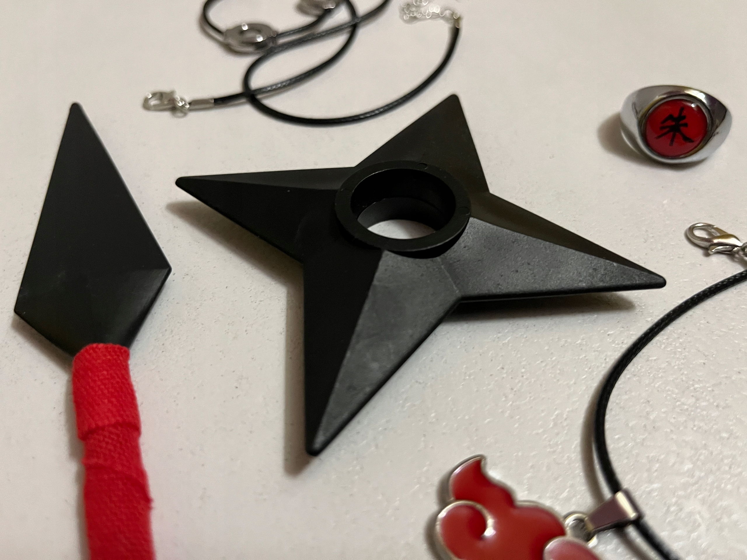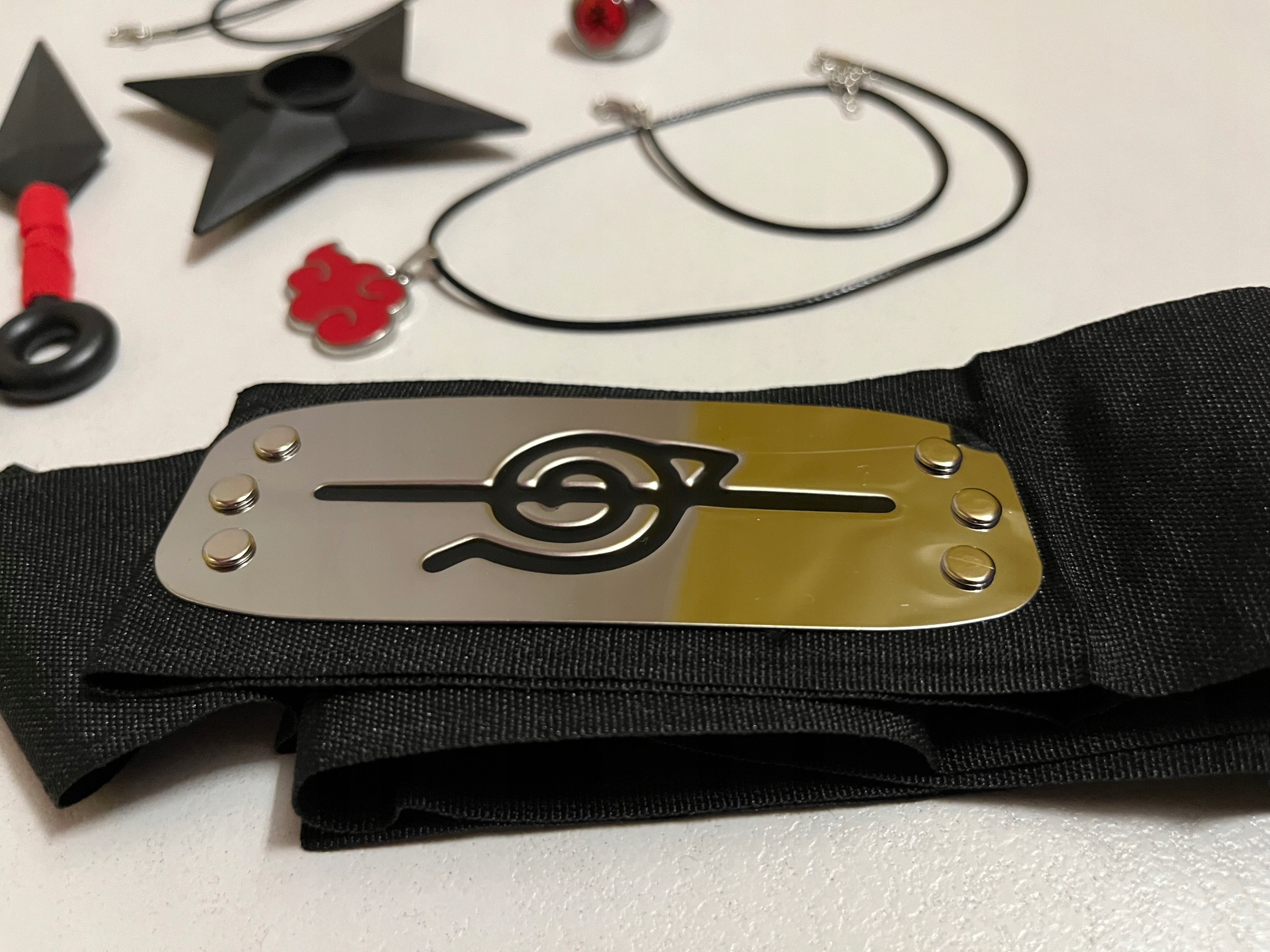 Размер: черный металл, размер повязки Конохи: 11,5 х 5 см, сюрикен: около 6,5 см, длина кунаи: 13 см.