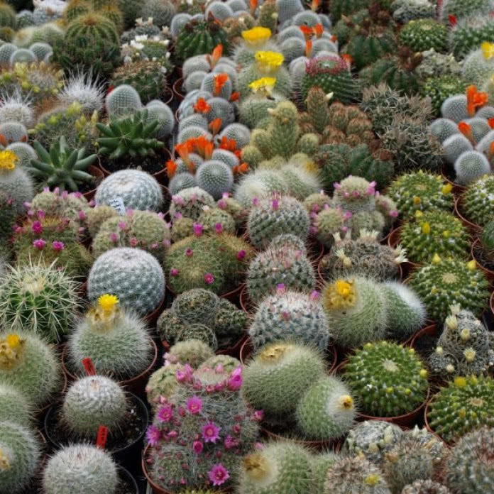 Отличные многолетние растения для выращивания любителями. Растения нетребовательны и красиво выглядят. Дополнительным достоинством кактусов является их очаровательный внешний вид и радующие глаз соцветия. Интересно, что красивее всего цветут часто забытые и не политые экземпляры. Кактусы вырастают до 10 см в высоту и прекрасно смотрятся в миниатюрных альпинариях, созданных в горшках. Солнечная позиция. Минимум воды и мало удобрений. Более низкие температуры зимой – это ускорит цветение кактусов.