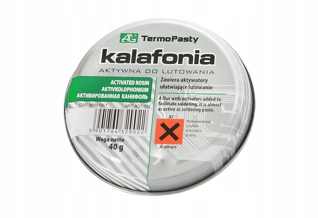 Активная канифоль для облегчения пайки. Его активность аналогична паяльной пасте. Содержит активаторы, облегчающие процесс пайки. Цвет желто-янтарный.