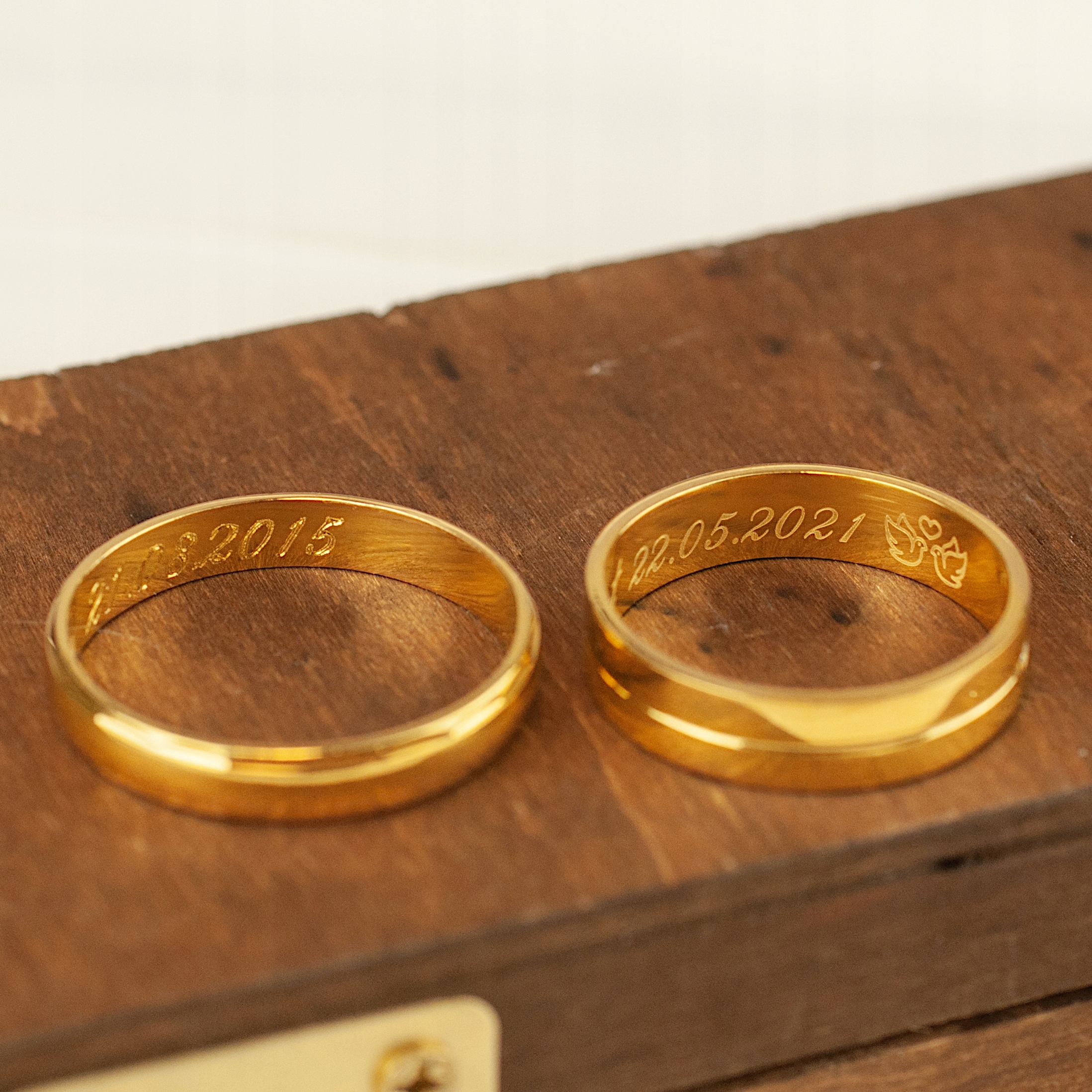 Гравировка, выполненная обоими методами, является стойкой. Мы уверены, что гравировка никогда не сотрется и навсегда останется на обручальных кольцах.