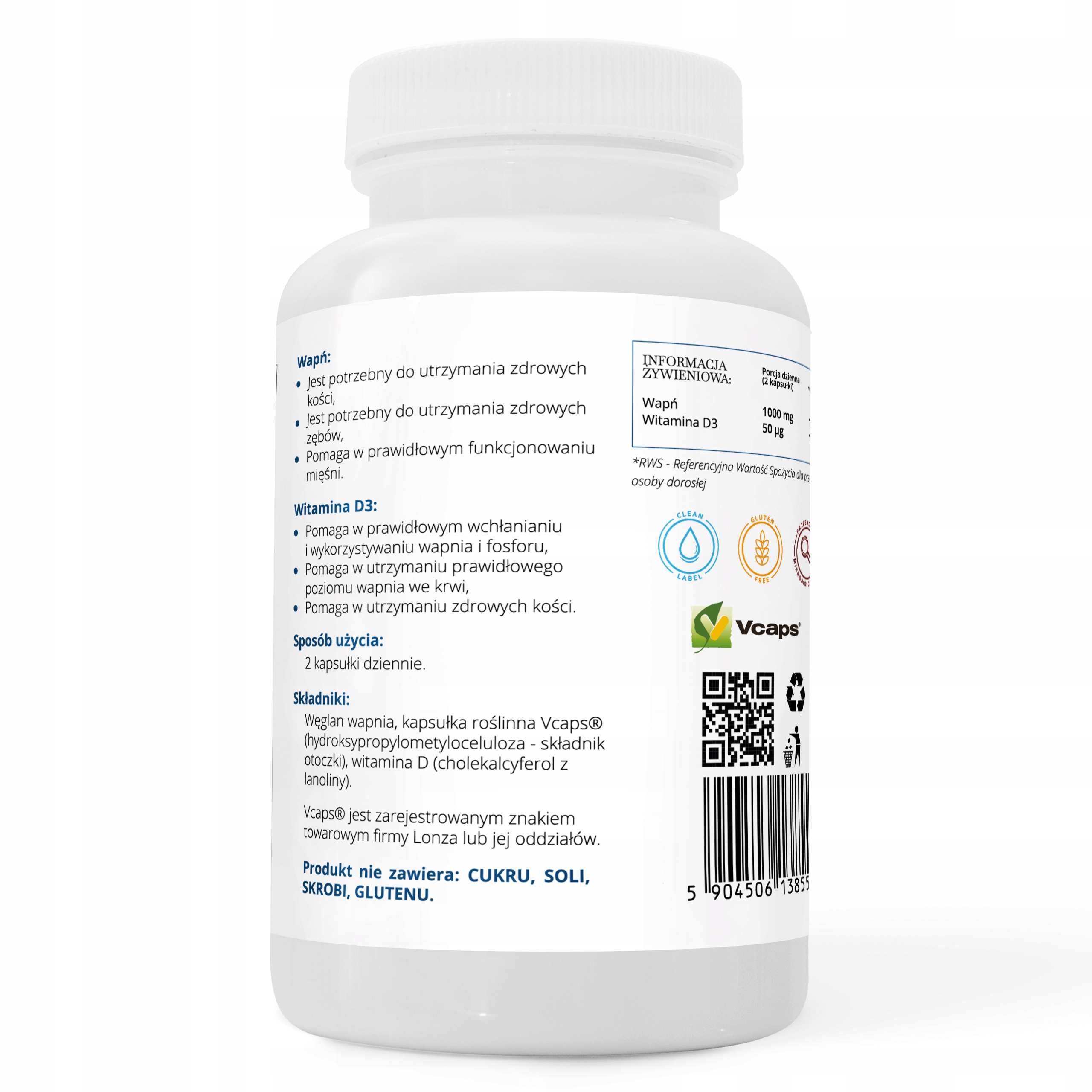 ИНГРЕДИЕНТЫ:Карбонат кальция, растительная капсула Vcaps® (гидроксипропилметилцеллюлоза - компонент оболочки), витамин D3 (холекальциферол из ланолина).