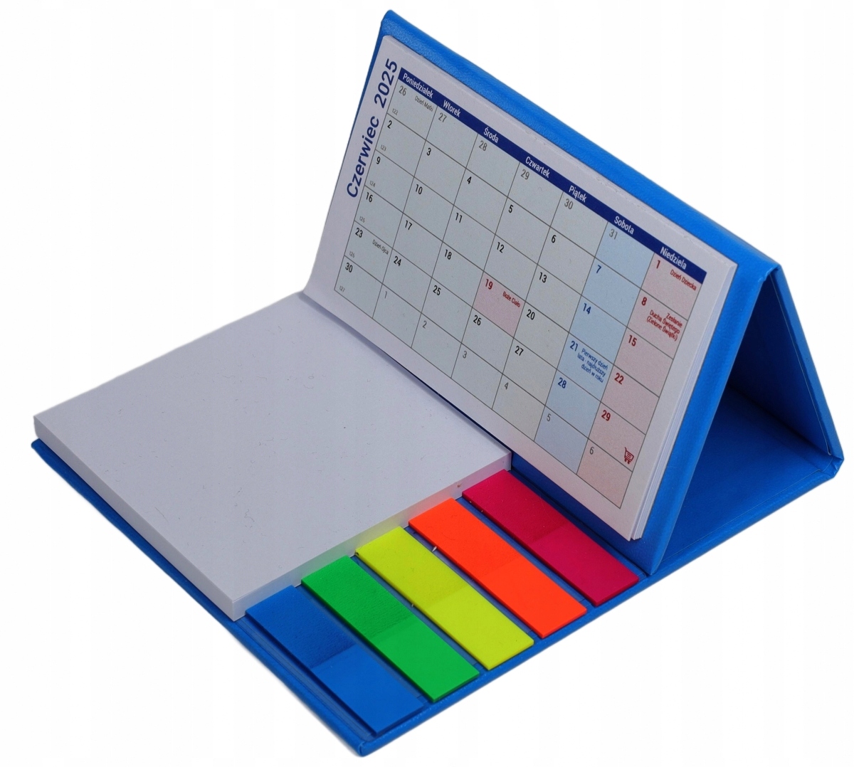 Удобный небольшой календарь, чтобы положить на стол. Укрепленный стенд в эксклюзивном шпоне обеспечивает долговечность и эстетический вид календаря. Прозрачный календарь облегчает планирование и управление сроками. Календарь отмечен не работающими днями, выбранные обычные и религиозные праздники и коммерческие воскресенья.