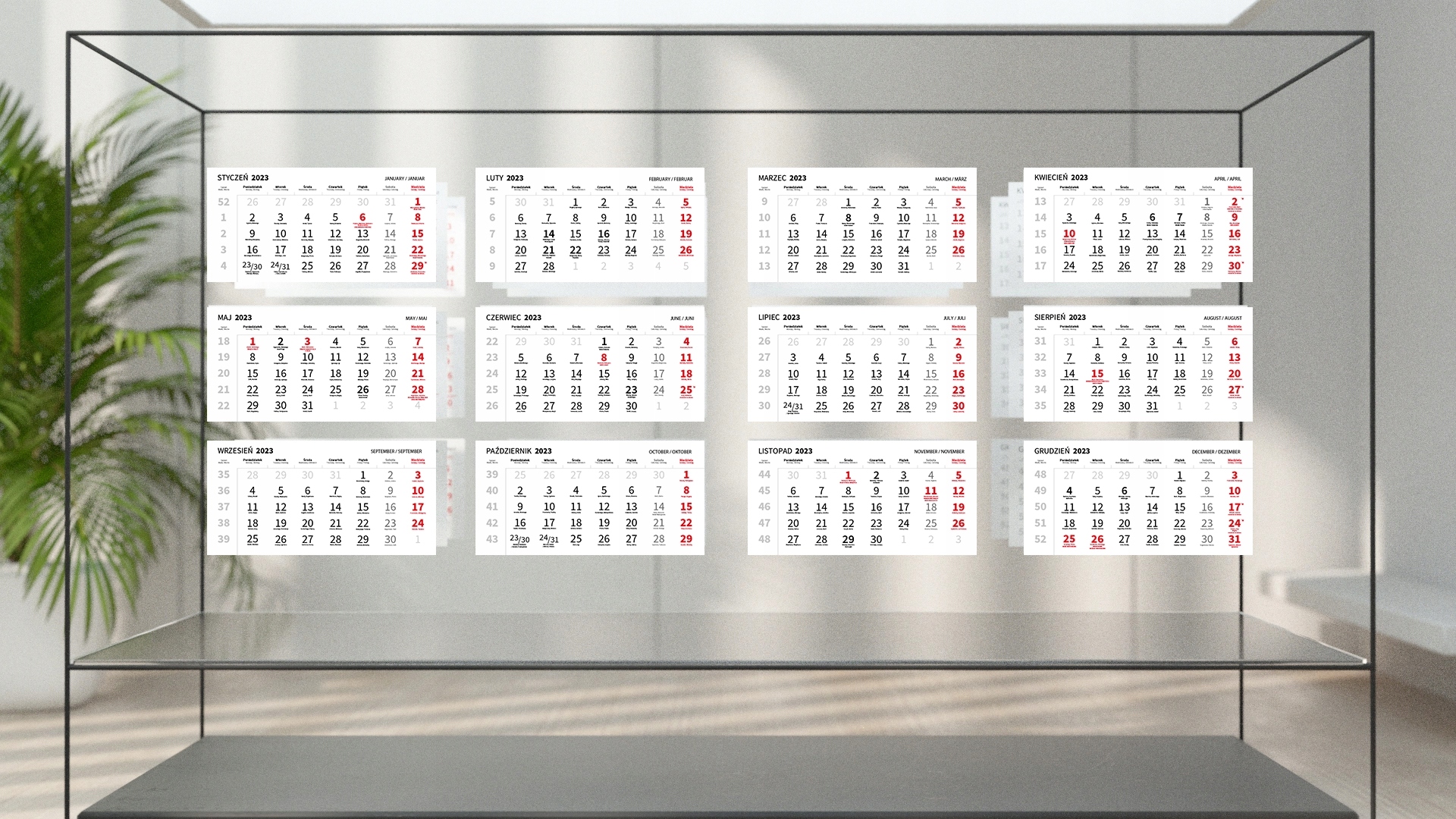 Принт выполнен в двух цветах: черном и красномМы прикрепляем красное окошко к каждому набору календарей. Имеет резинку, благодаря которой подходит для календарей с шириной спинки от 31 до 40 см.