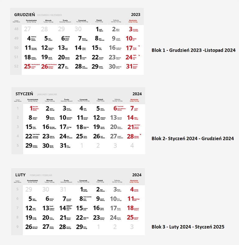 Календари для тройных календарей 2024
