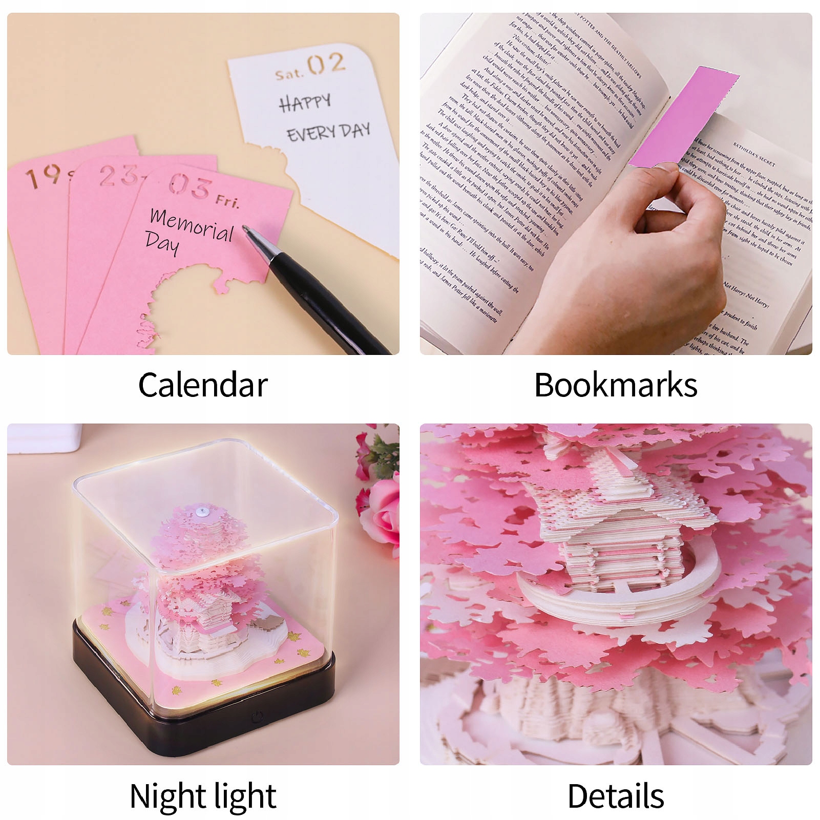 1. Уникальный дизайн: блокнот-календарь на 2024 год имеет реалистичный трехмерный эффект домика на дереве с бумажной скульптурой, который подарит вам новые впечатления от бумаги.