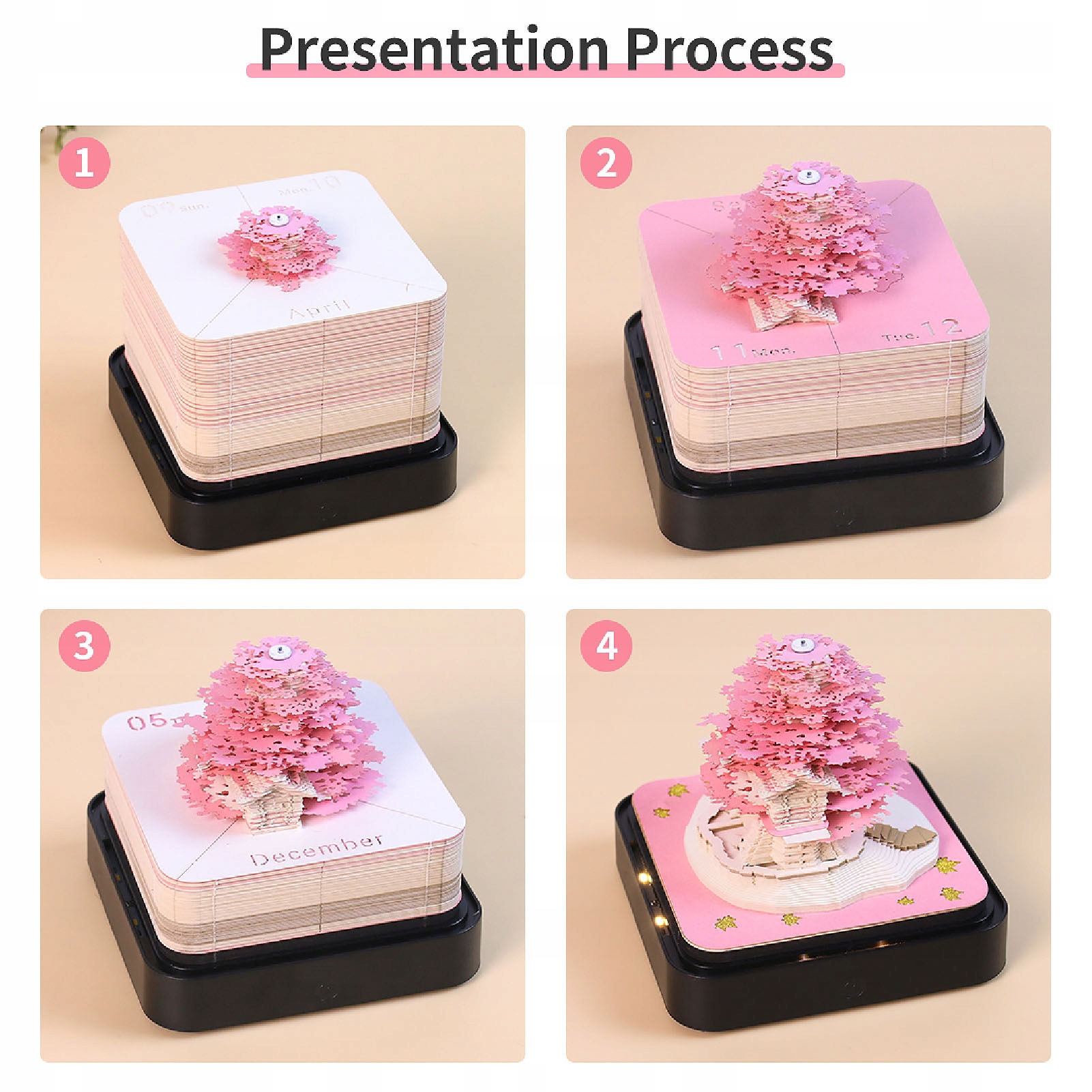 Особенность: ✅1. Уникальный дизайн: блокнот-календарь на 2024 год имеет реалистичный трехмерный эффект домика на дереве, вырезанный из бумаги, что дает вам новые впечатления от бумаги.