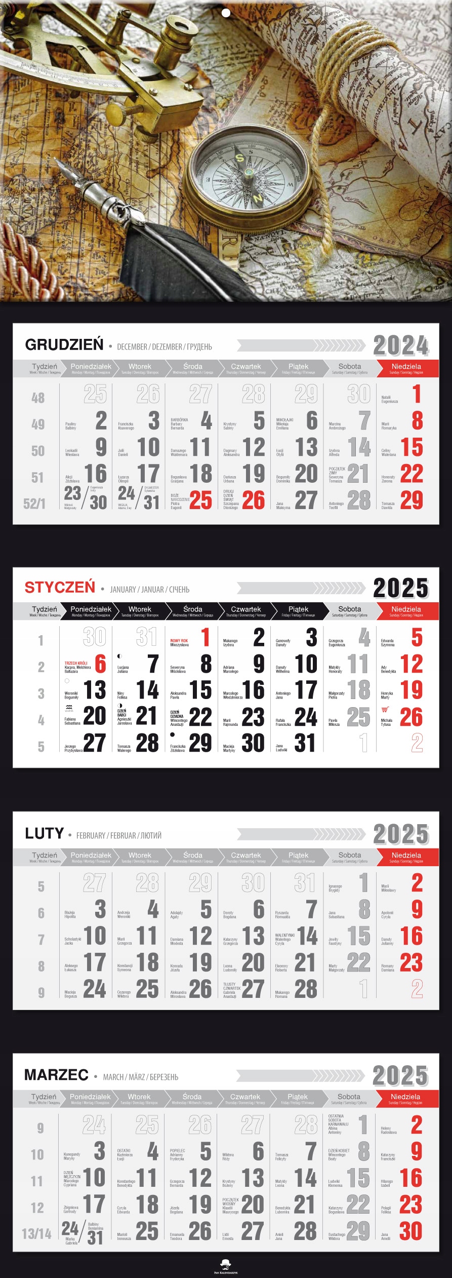 - Премиум четыре -пораженный календарь с выпуклой головой.