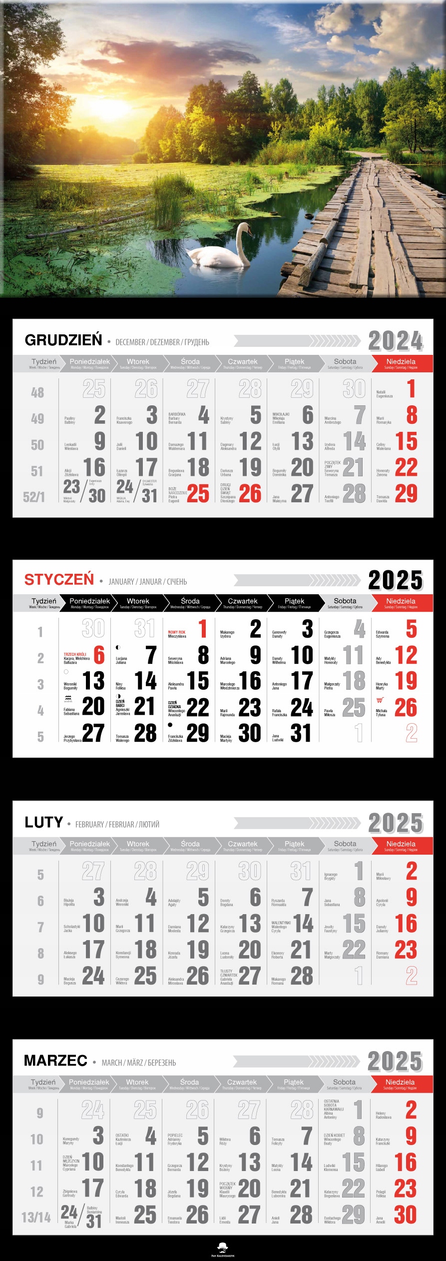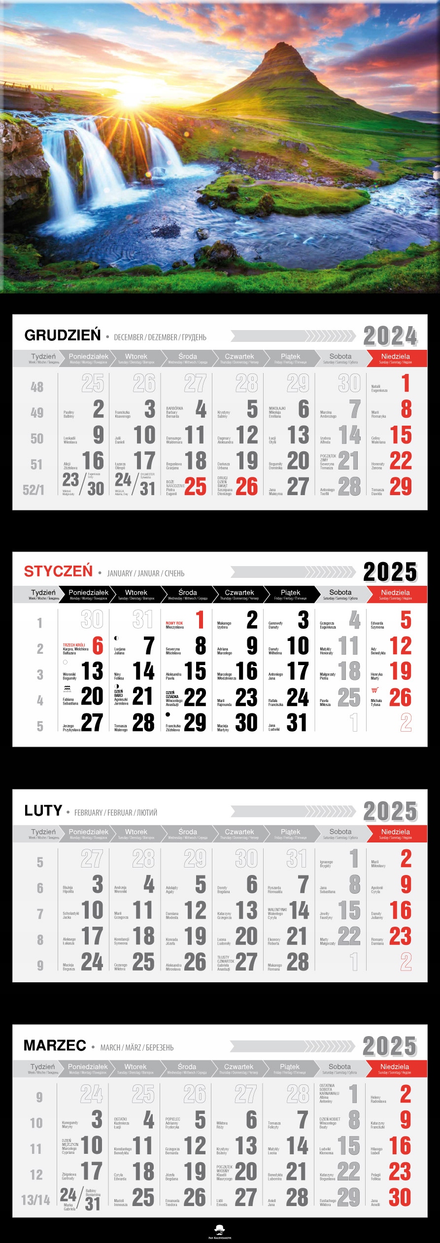 Календарь 2025 Четырехдневной ежеквартальный премиум гора Татри Морки Око Хит