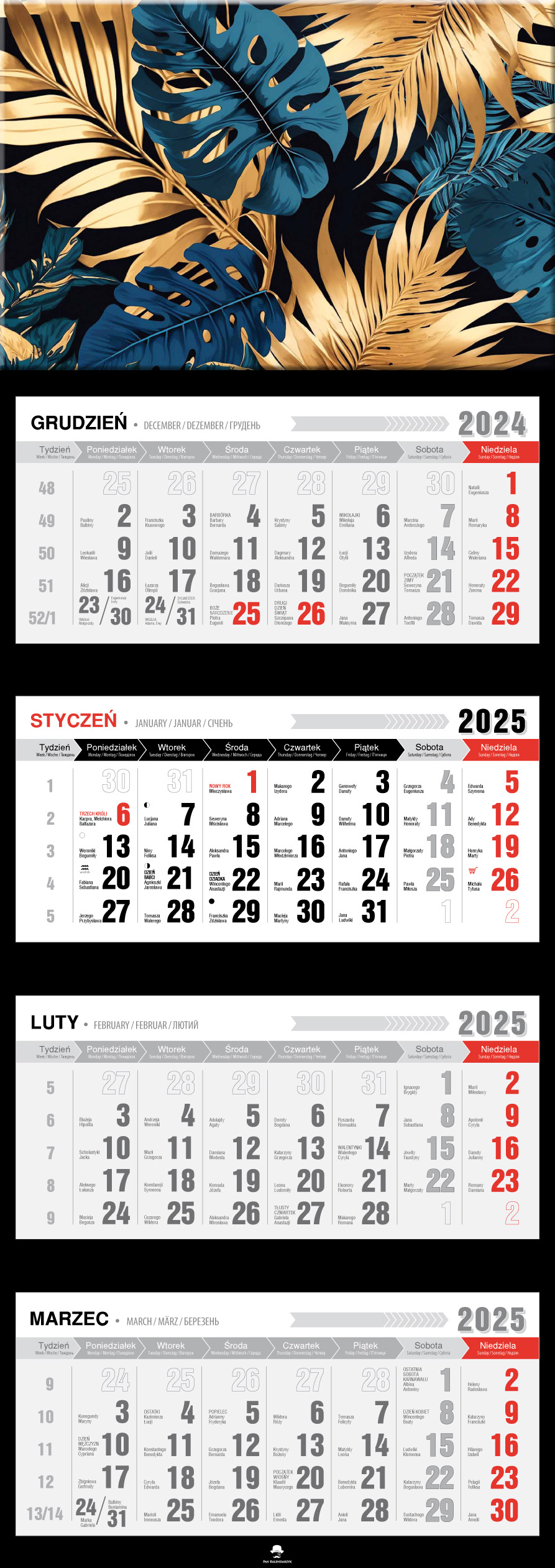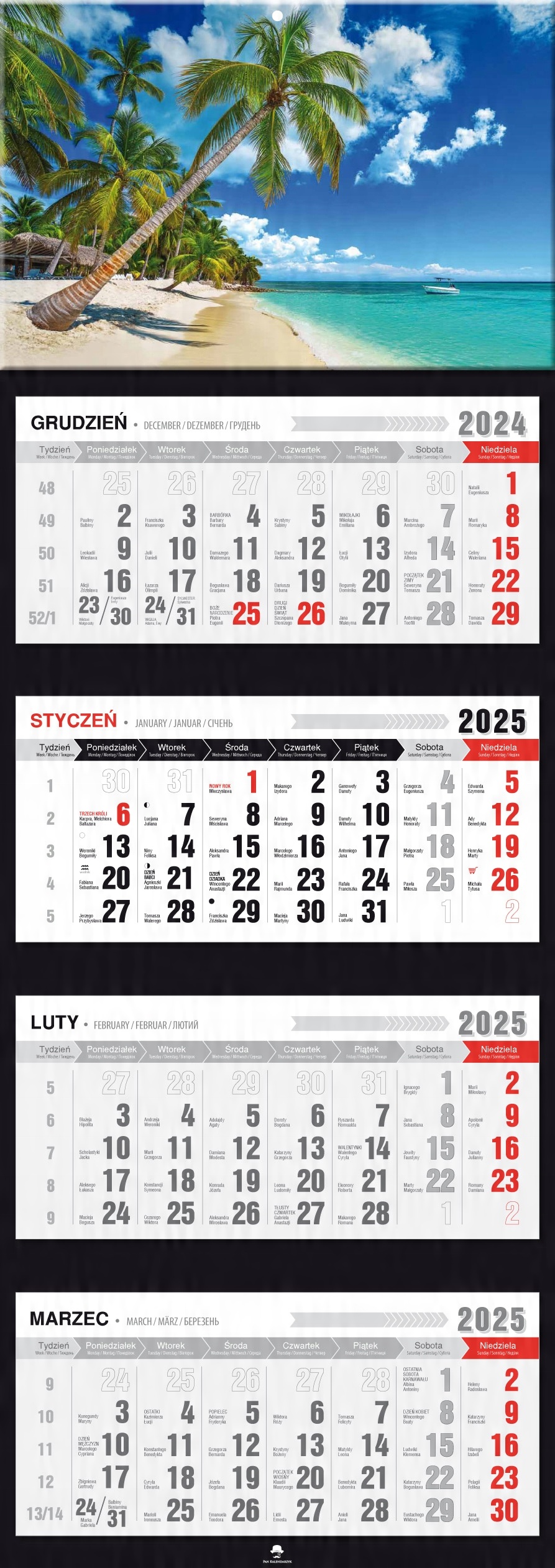 четырехдневный календарный ежеквартально с выпуклой лакированной головой 2025 Morskie Pattern