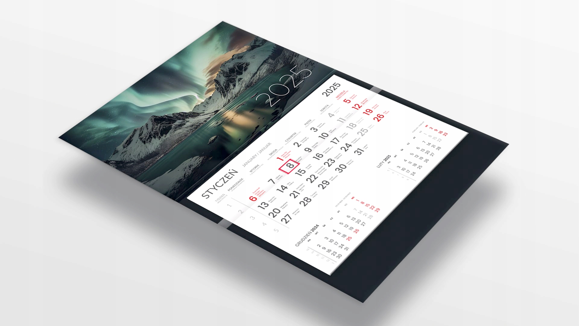 ✅ Три -частный календарь чистый и разборчивый, напечатан на 90 г смещенной бумаги. На одной карте есть 3 месяца - большой, основной месяц + уменьшенный месяц вперед и назад. Названия месяцев и недель - на 3 языках (польский, английский, немецкий)