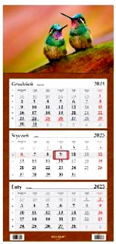 Классический трехлетний календарь на 2025 год, продолговатый с выпуклой, элегантной головой и группой с раздвижным окном, чтобы отметить день. Календарь может быть сложен в 3 места. Содержит 3 отдельных, сломанных календаря из 12 карт. Календарь упакован в защитную пленку. Приостановленный метод - отверстие в верхней части. Размер развернутого календаря составляет 32 х 67 см. Был произведен в Польше.