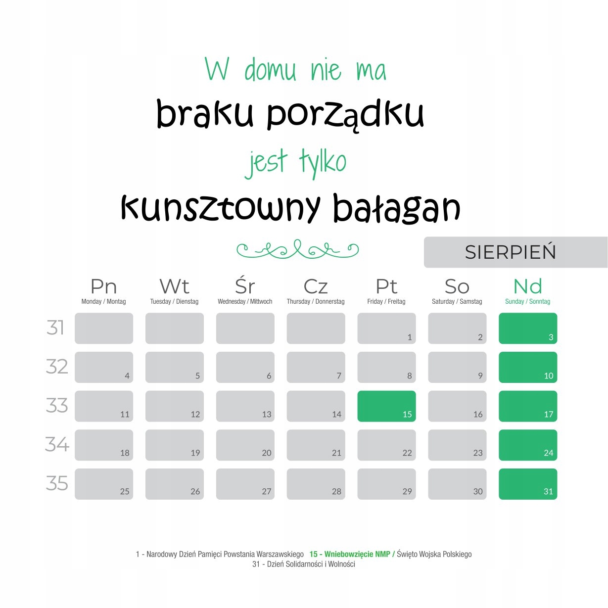 Практическое настольное украшение/рабочее место - Календарь настольного календаря в расположении месяца на странице.