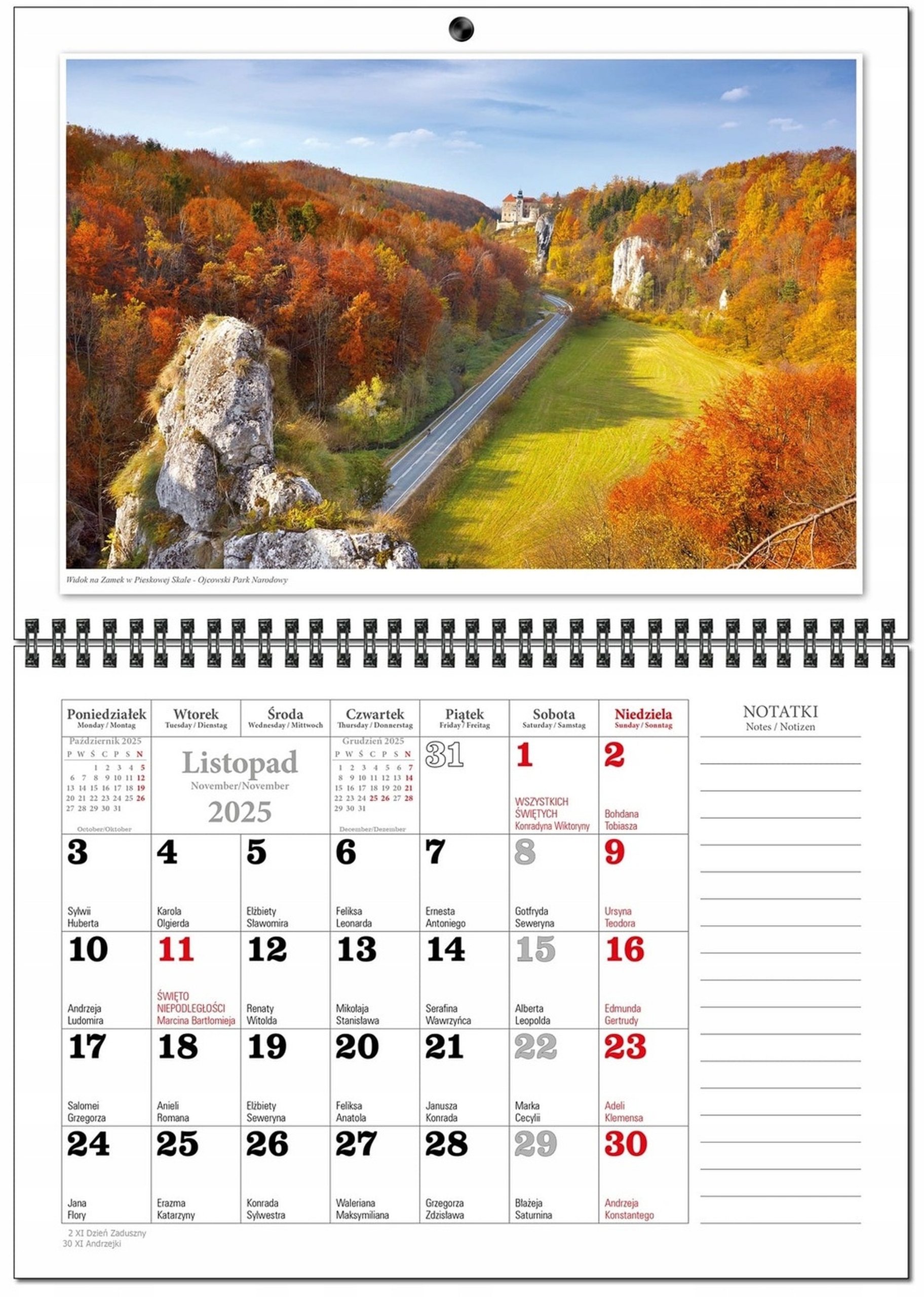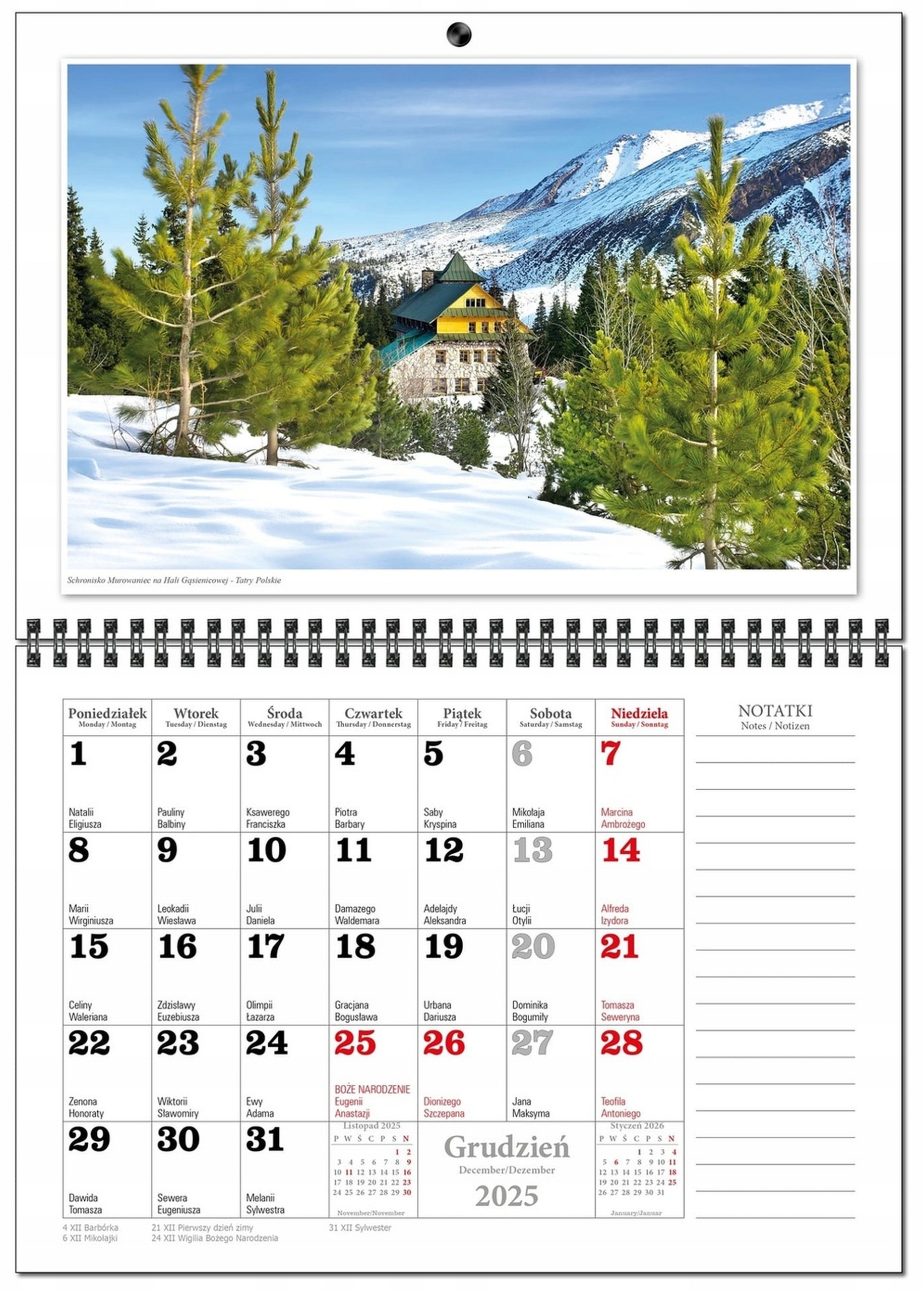Календарь 2025 Стена 29x42см для спиральных польских гор
