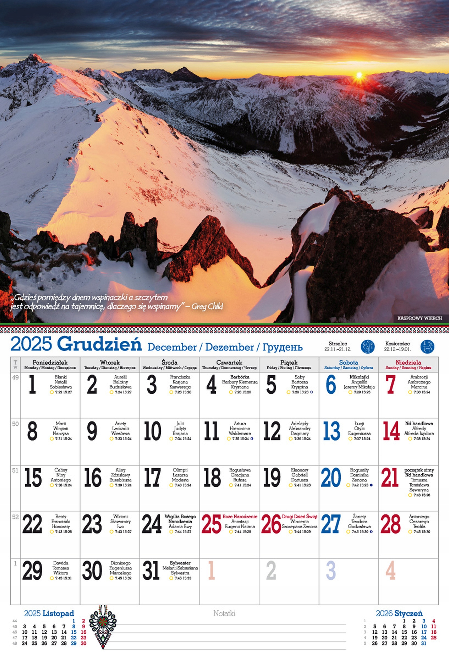 Календарь 2025 Стена A3 13 Горные горы Татра