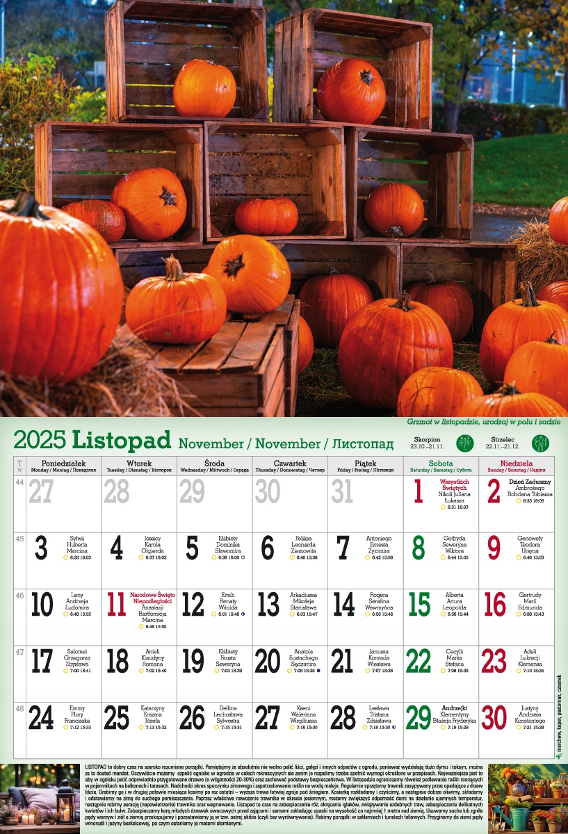 большой календарь стен с полезной информацией для любителей любительского садоводства.