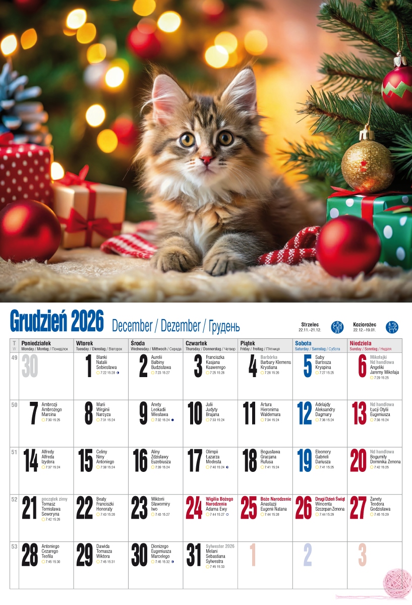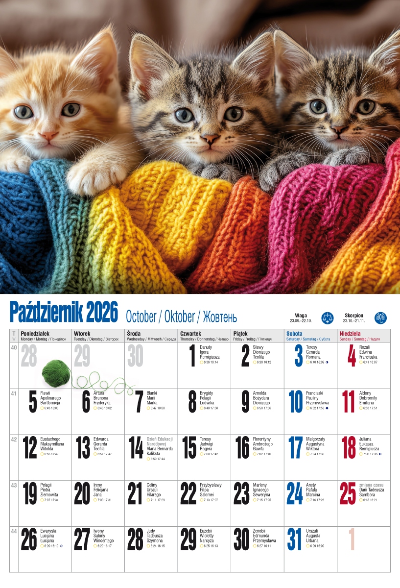Оплачивая «Календарь 2026 ПАРТА волна 47x32см Коти Котки», вы можете быть уверены, что данный товар из каталога «Настенные календари» будет доставлен из Польши и проверен на целостность. В цене товара, указанной на сайте, учтена доставка из Польши. Внимание!!! Товары для Евросоюза, согласно законодательству стран Евросоюза, могут отличаться упаковкой или наполнением.