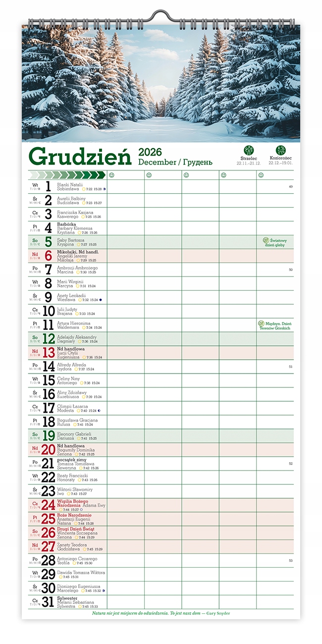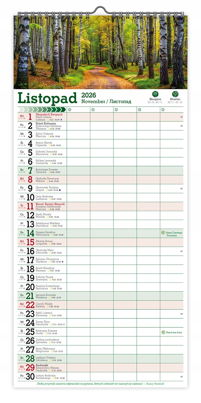 Календарь 2026 Планировщик стен для нот для 5 человек леса