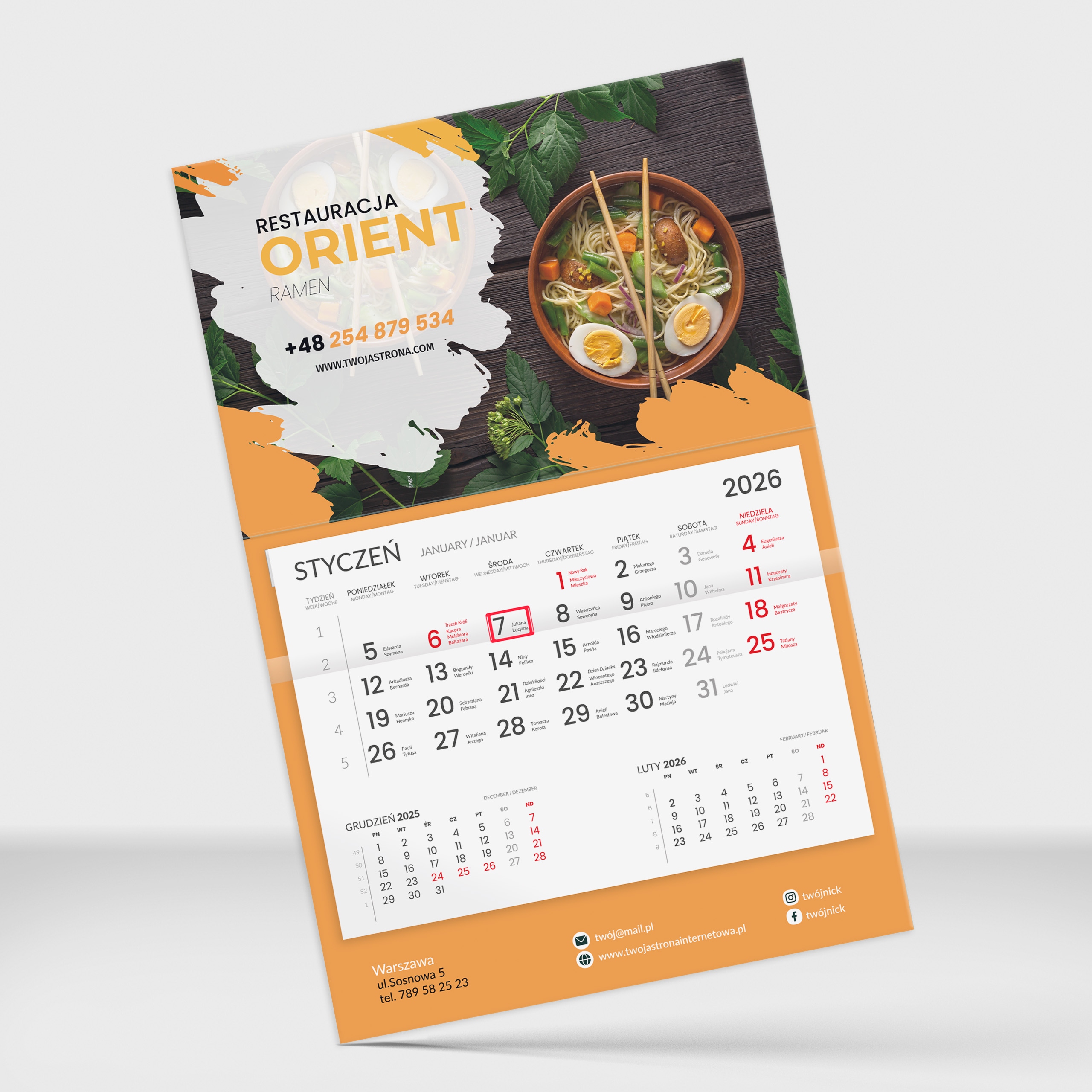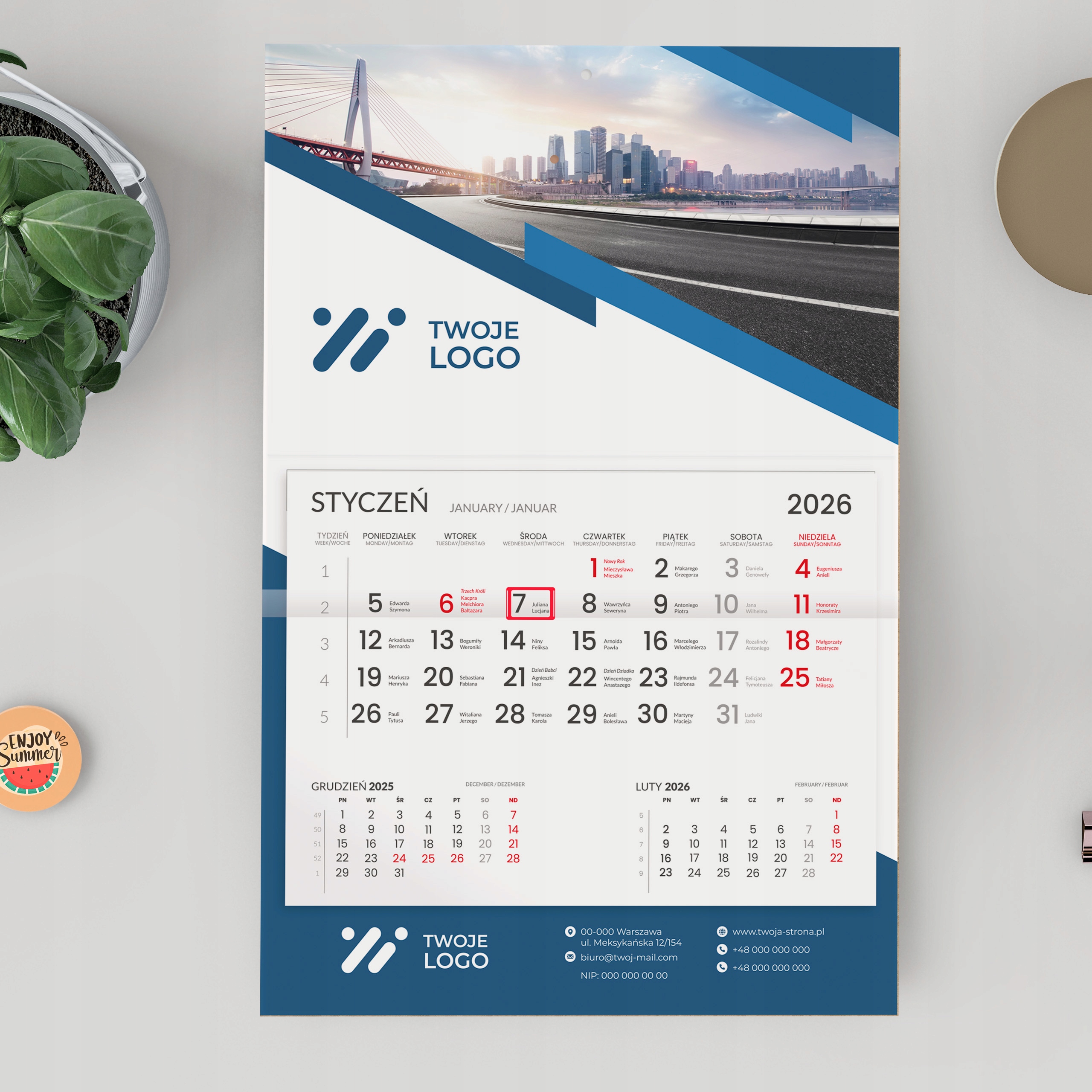 ✅ Чистый и разборчивый календарь в польском напечатан на 90 г смещенной бумаге, 12-карт (12 месяцев + шайба). Названия месяцев и недель: на 3 языках (польский, английский, немецкий) с важным днем имени праздников