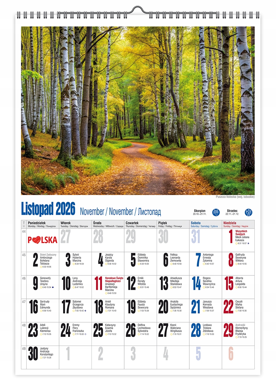 Календарь 2026 Стена 13 Планов 32x47 см Польские ландшафты