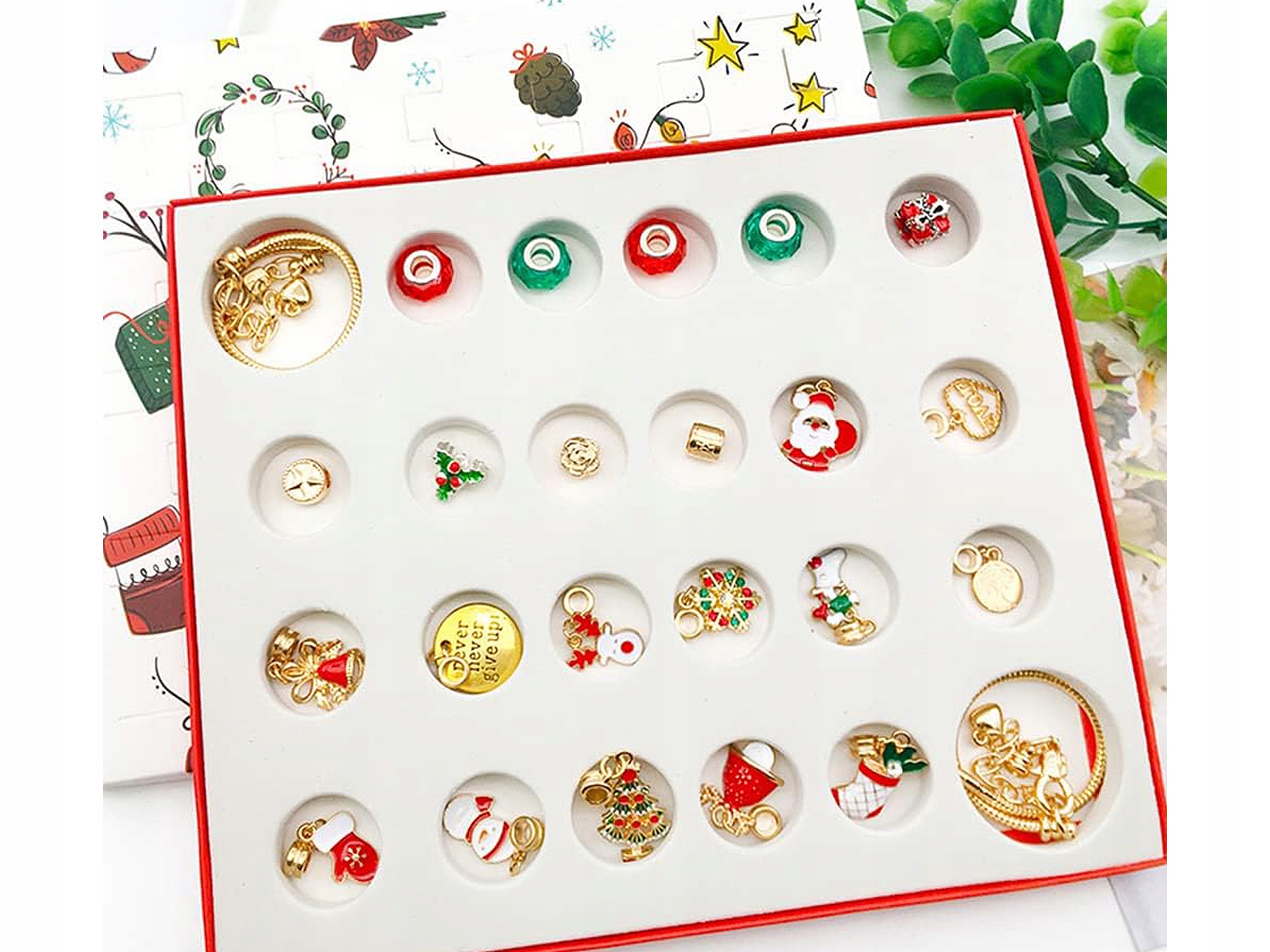 Каждый день, с 1 декабря по 24 декабря дети открывают новые элементы ювелирных изделий, создавая уникальные рождественские браслеты.