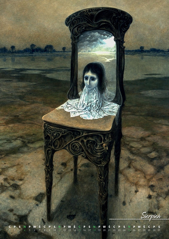 13-страничный календарь на 2024 год с 12 иллюстрациями работ Здзислава Бексиньского в формате А3 (420х297 мм), напечатанный на мелованной бумаге плотностью 170 г.