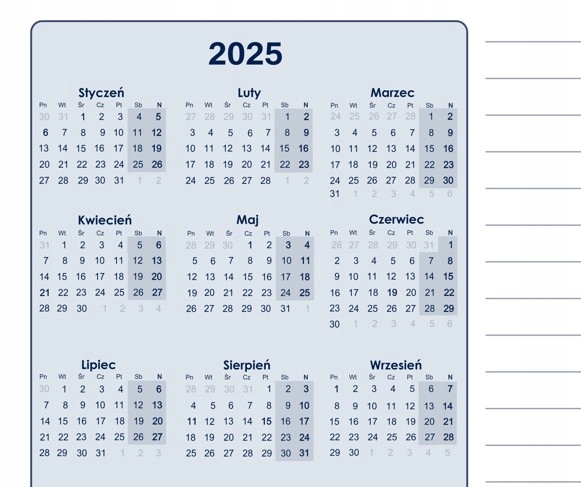 Biuwar Planer Calendar 2025/2026 Light Line A2 Lock Lock Lock WS L