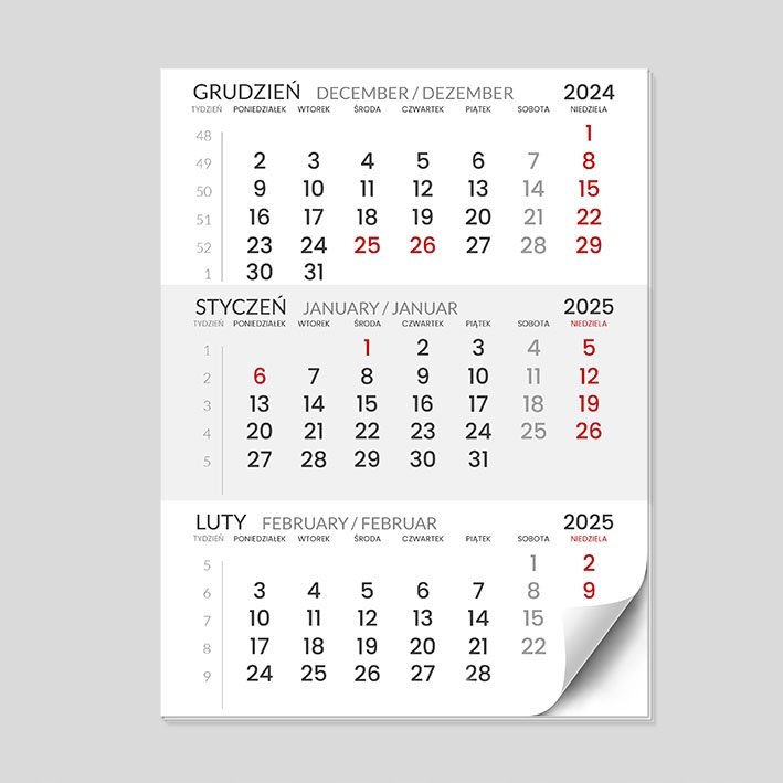✅ Чистый и разборчивый календарь в польском напечатан на 90 г смещенной бумаге, 12-карт (12 месяцев + шайба). Названия месяцев на 3 языках (польский, английский, немецкий) с важными праздниками, отмеченными