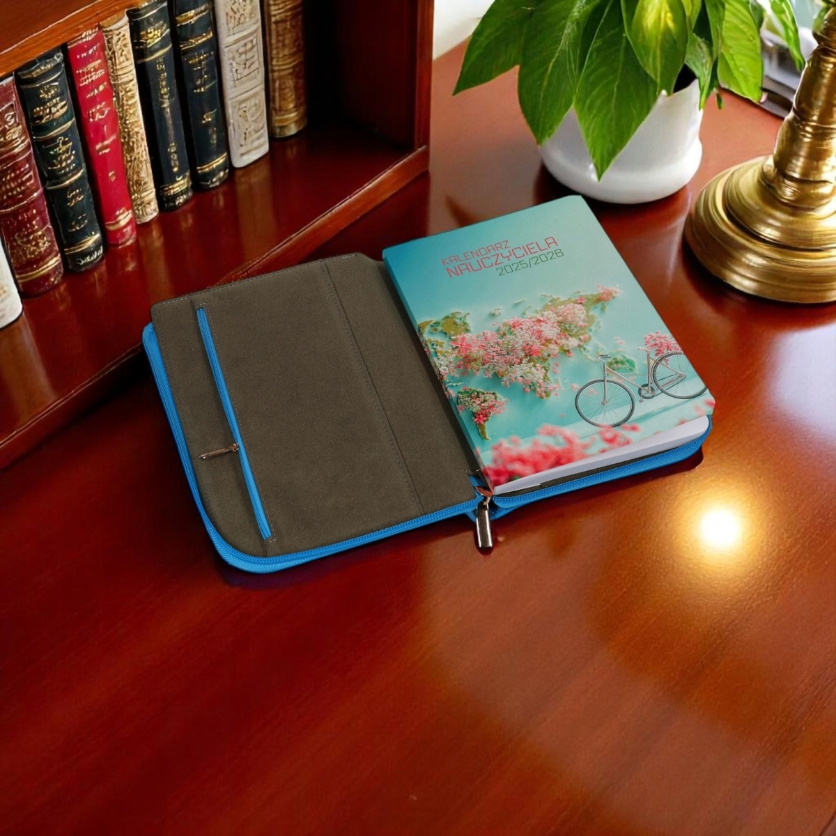 Учительский календарь 2025/2026 A5 Еженедельный взаимозаменяемый велосипед светильника с карманами, закрытым с застежкой -молнией
