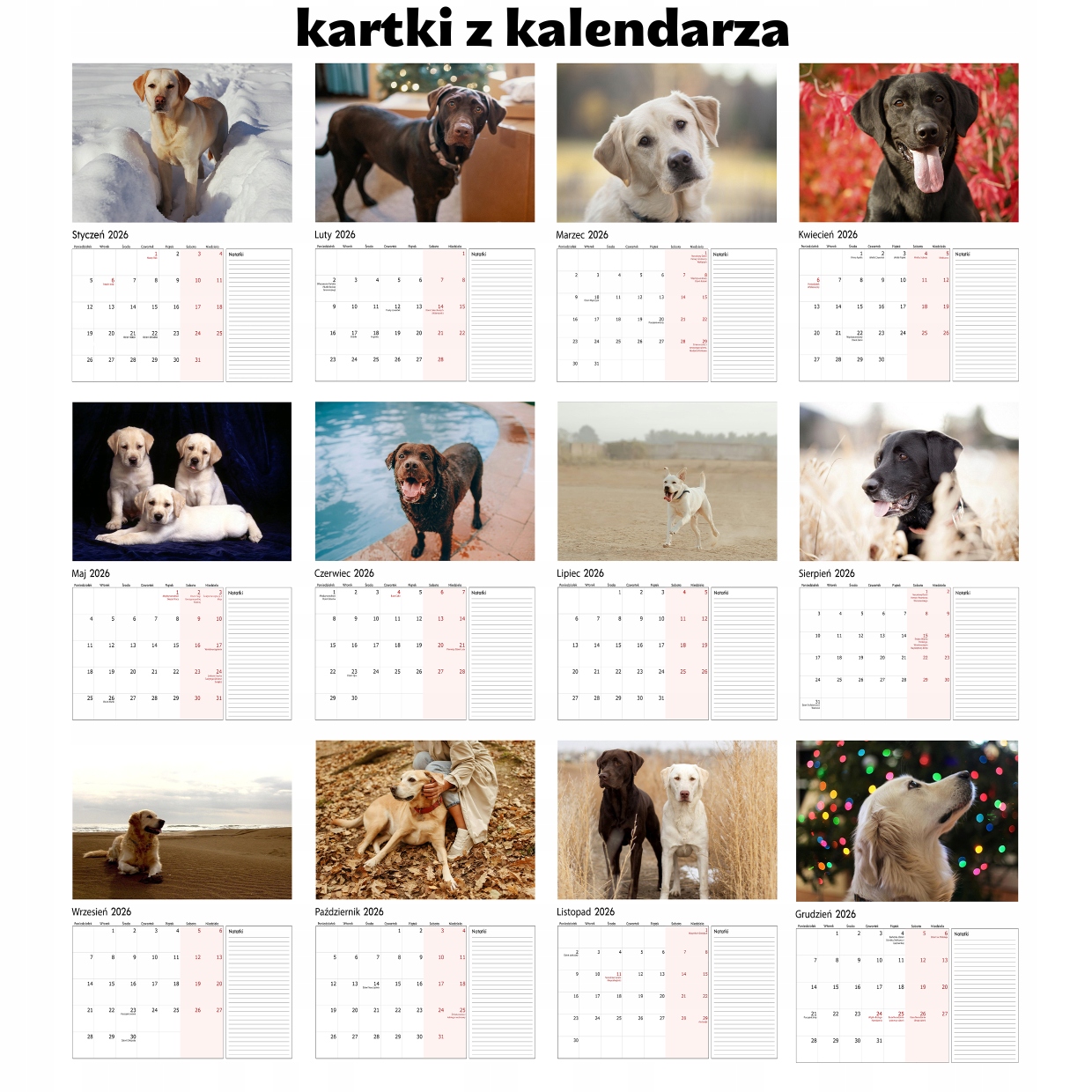 НАСТЕННЫЙ КАЛЕНДАРЬ НА 2026 ГОД, БОЛЬШОЙ МНОГОПЛАСТНОЙ БЛОКНОТ С СОБАКОЙ ЛАБРАДОР РЕТРИВЕР А4