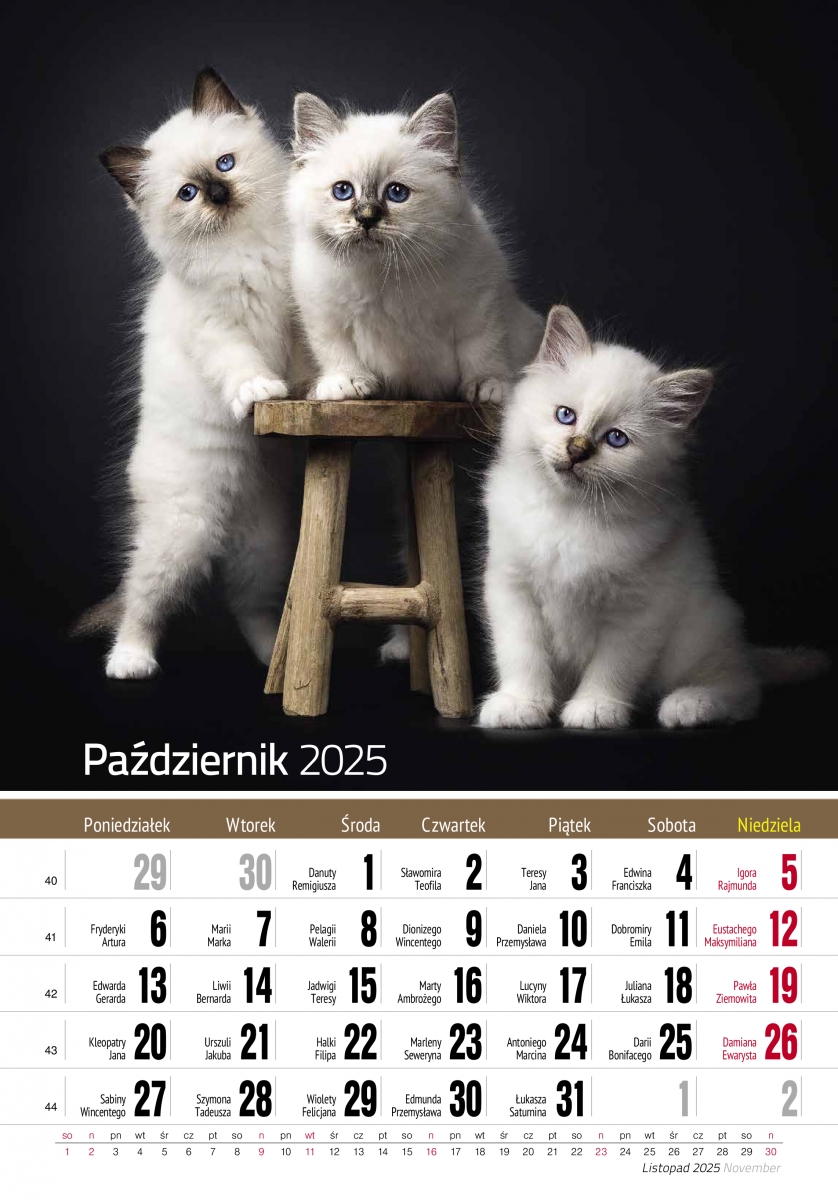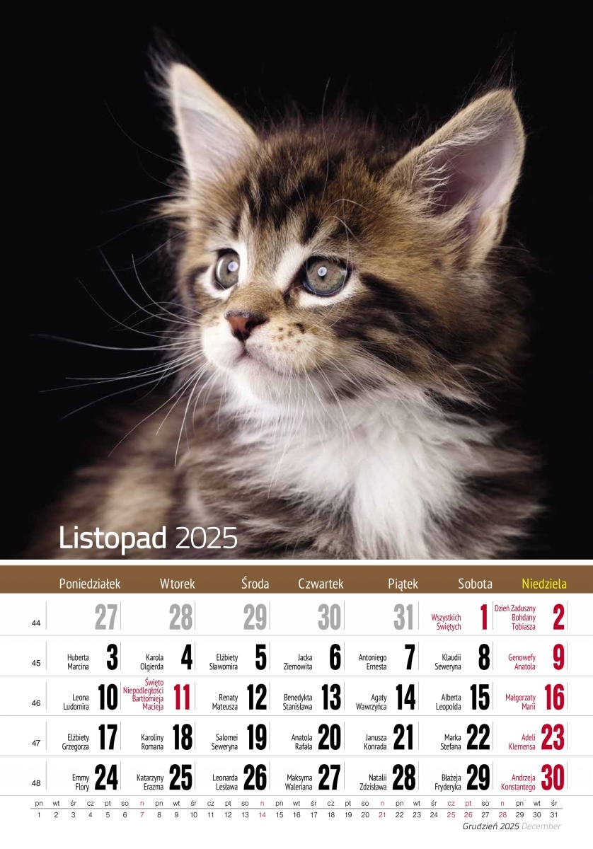 Календар настінний 29х41,5 см А3 КОТИ 2025 ТВАРИНИ кошенята КОШЕНЯТА подарунок