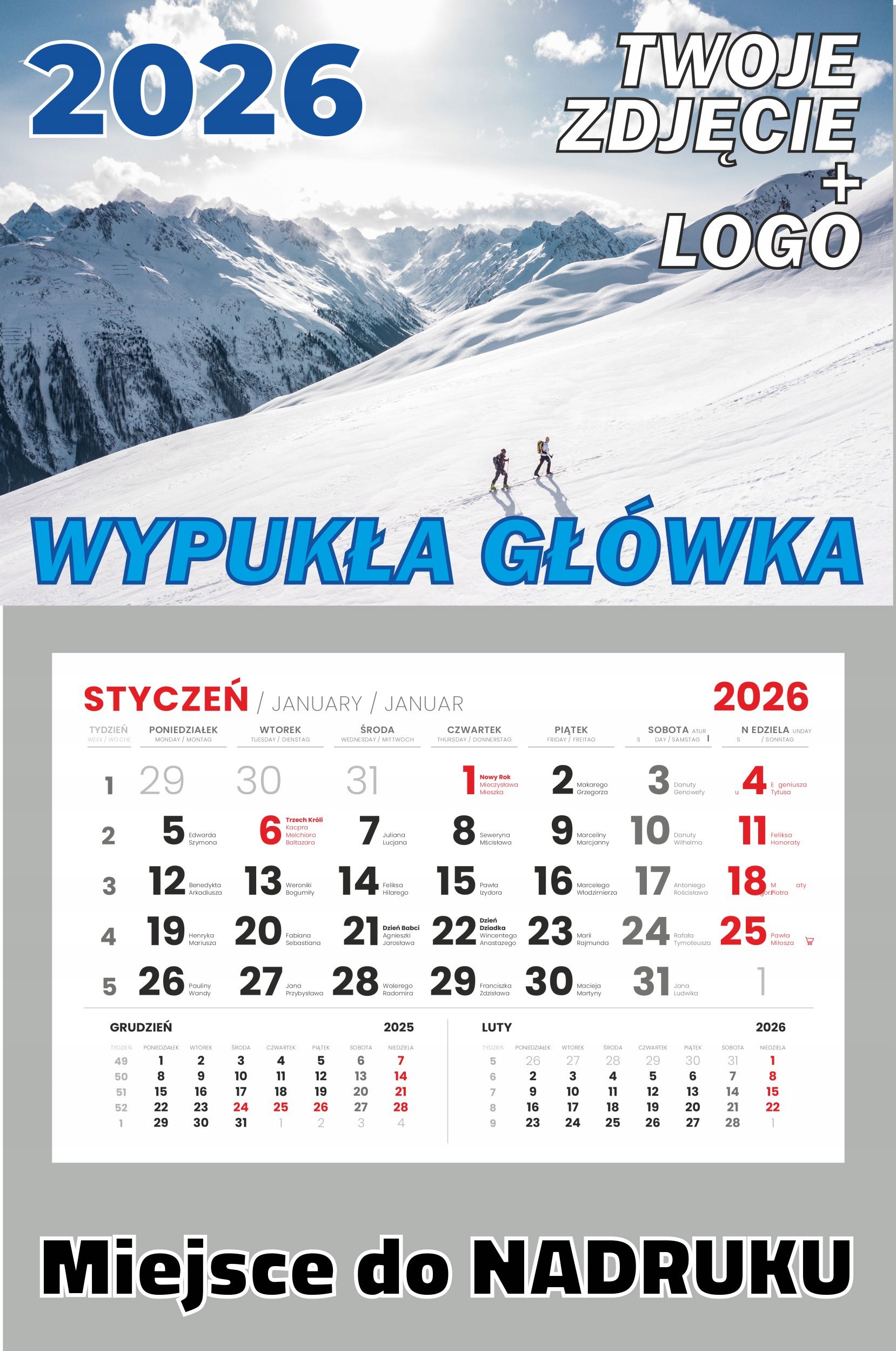 Голова календаря напечатана в полном цвете , что позволяет создавать любой графический дизайн, размещение персонажей компании, фотографий, текстов в любых цветах. Подложка, используемая для печати, представляет собой специальную картон с весом 300 г, гарантируя очень хорошее качество цвета . Добавление используемой флэш -фольги явно оживляет цвет и в то же время увеличивает долговечность календаря. В верхней части головы есть отверстие, которое позволяет вам приостановить календарь. Верхний край календаря дополнительно потерян и приклеен, что укрепляет его жесткость. В середине календаря, над календарем, большая линия работает, благодаря которой легко сложить пополам.