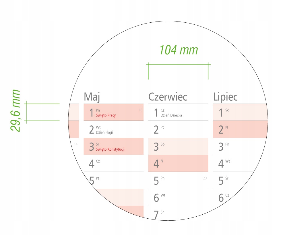 Размер поля примечаний для годового календаря B0 составляет 104x29,6 мм