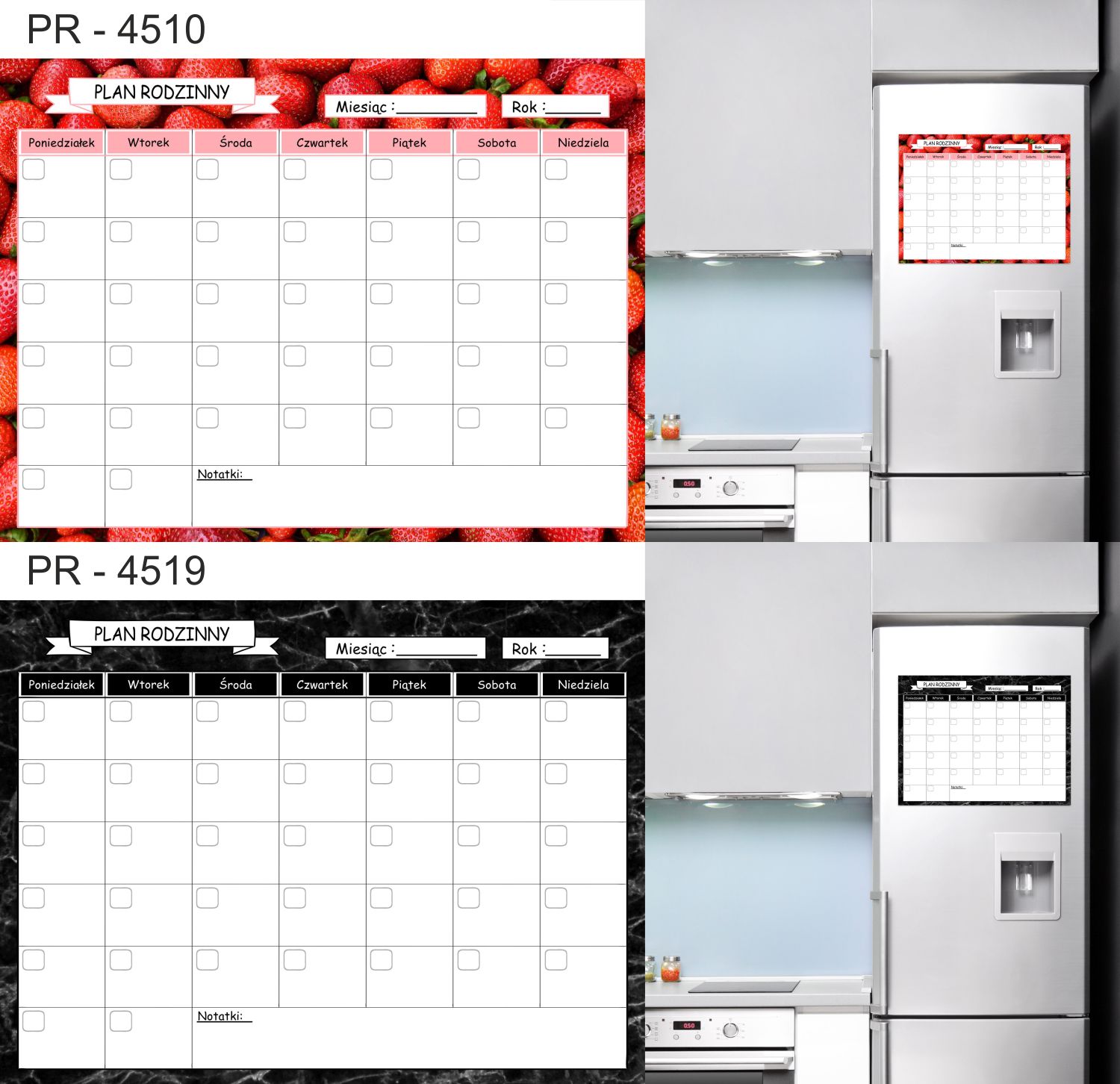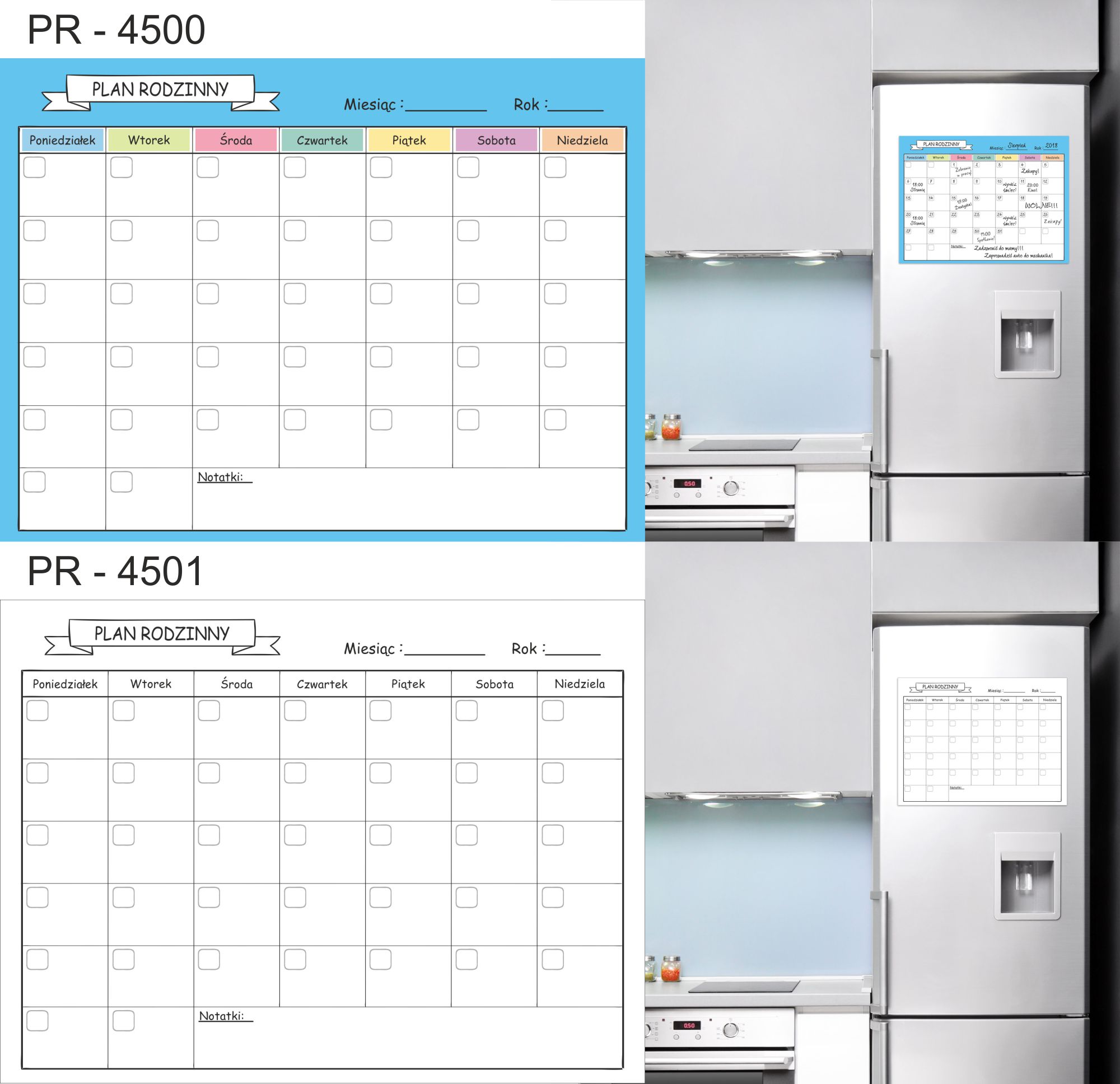 Магнитный планер на холодильник (моющийся), покрыт ламинатом, который защищает распечатку от повреждений. При этом позволяет писать сухостираемыми или меловыми маркерами и без опаски стирать надписи.