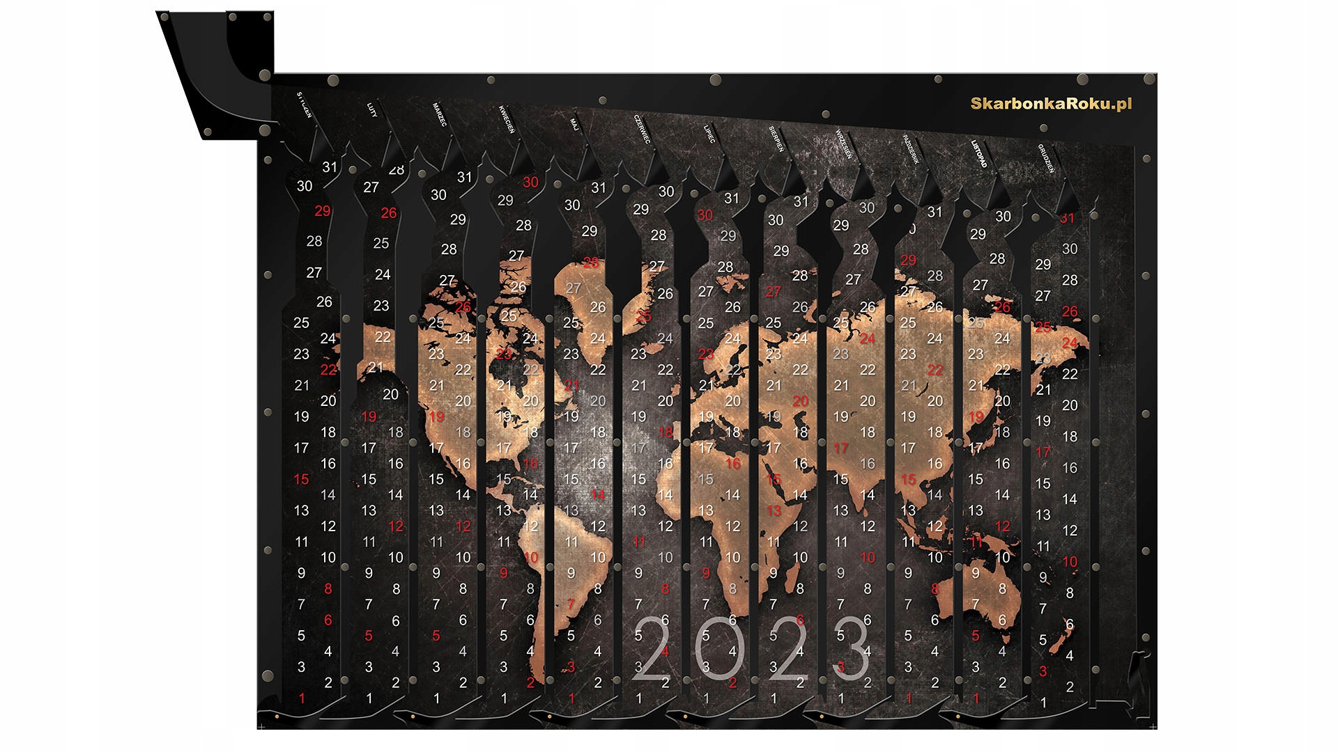Календарь «Карта мира на 2023 год» — это предложение-копилка с дизайном плаката, которое стало абсолютным хитом наших продаж. Копилка с картой - наш СУПЕР ХИТ и понравилась огромному количеству покупателей, поэтому мы решили сделать ее еще и в виде календаря на 2023 год. . Универсальный дизайн подойдет куда угодно и станет отличным подарком для каждого. На нашем сайте можно купить только календарь на ближайшие годы, а заменить его очень просто – достаточно открутить несколько винтов сзади.
