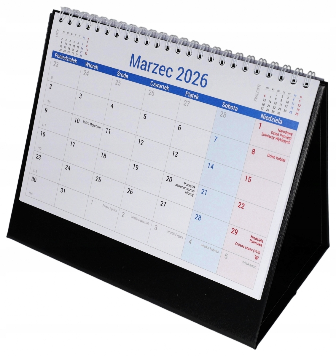 Практический календарь для постановки на столе. Укрепленный стенд в эксклюзивном шпоне обеспечивает долговечность и эстетический вид календаря. Большой прозрачный календарь облегчает планирование и управление сроками. Каждый день есть место, где можно отметить важные события или сделать короткую заметку. У нас есть сокращенный календарь предыдущего и следующего месяца на каждой карте календаря. Календарь отмечен не работающими днями, выбранные обычные и религиозные праздники и коммерческие воскресенья.