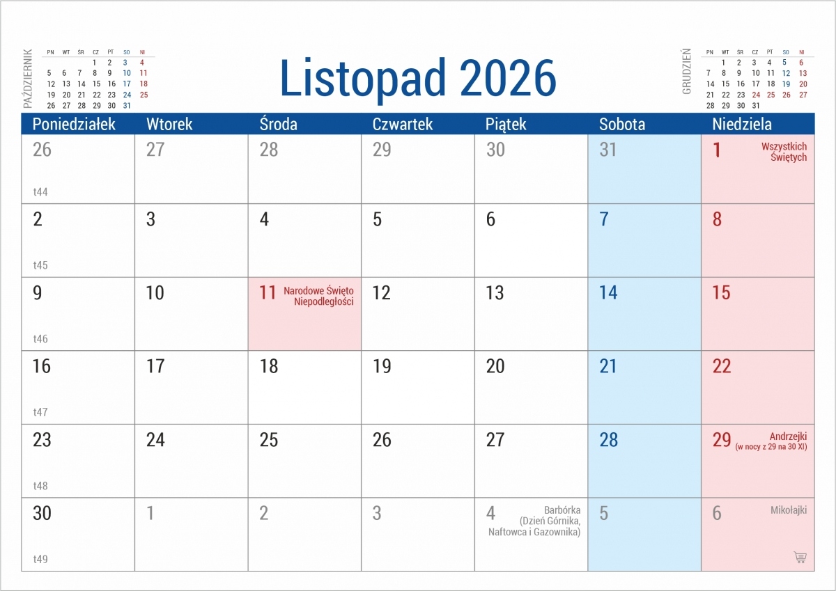 Прозрачный большой календарь в ежемесячной системе с местом для записи в каждый день. На каждой карте календаря мы также найдем предварительный просмотр предыдущего и следующего месяца.