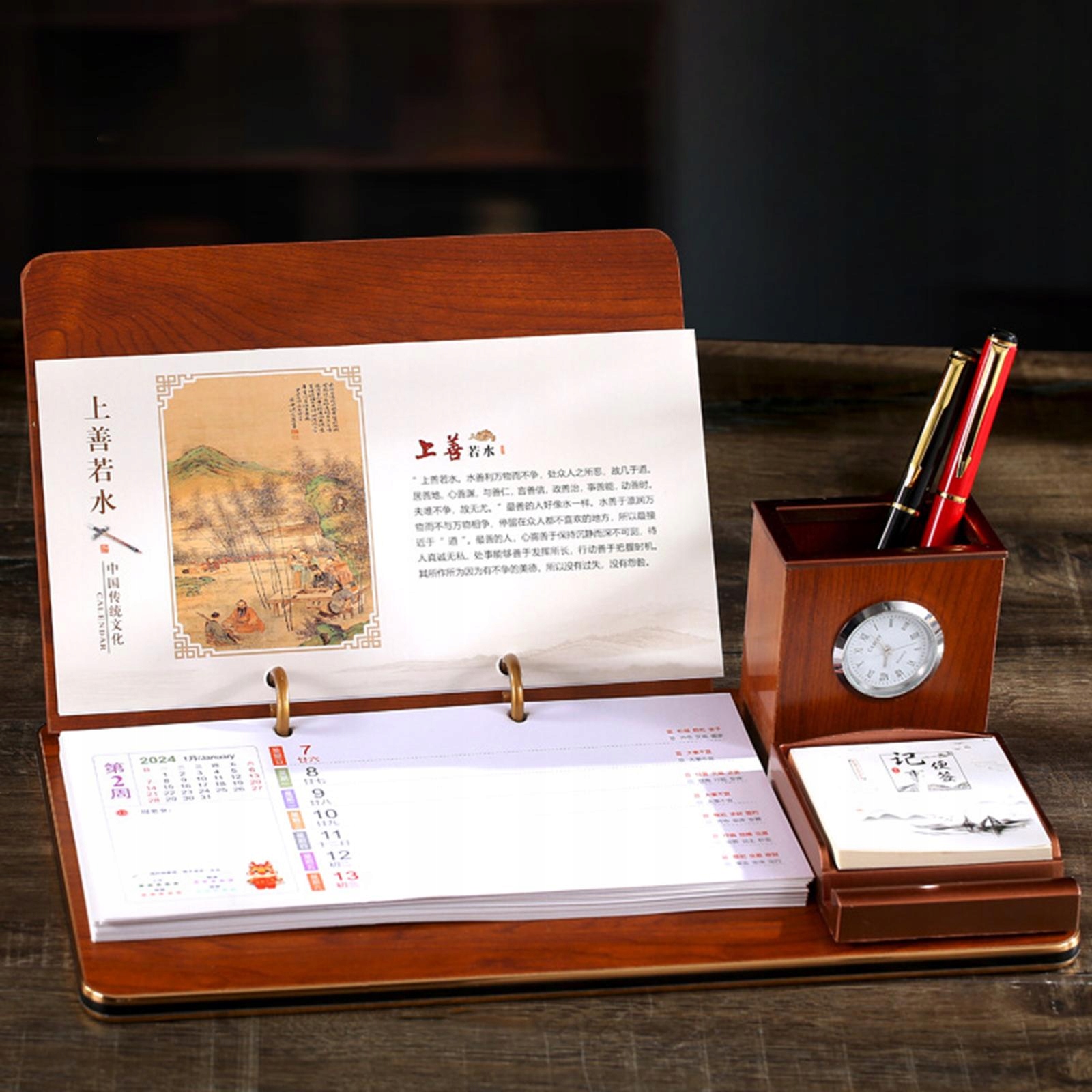 Календарь настольного календаря 2024 с ручкой для часы для ручки для бизнес -стола Нового года в стиле b