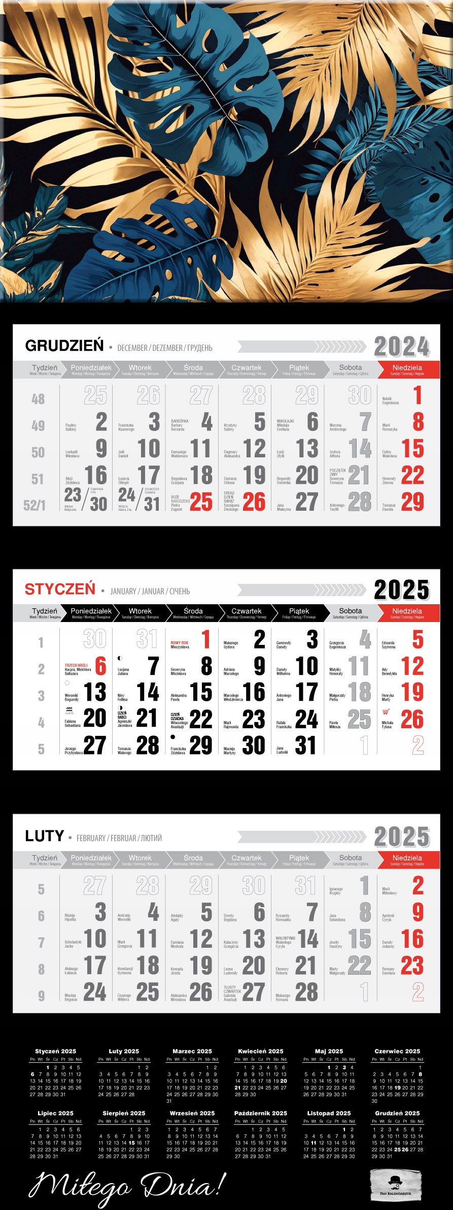 Три -районный календарь 2025 Толстый премиум -гламурный черный золотой монстр
