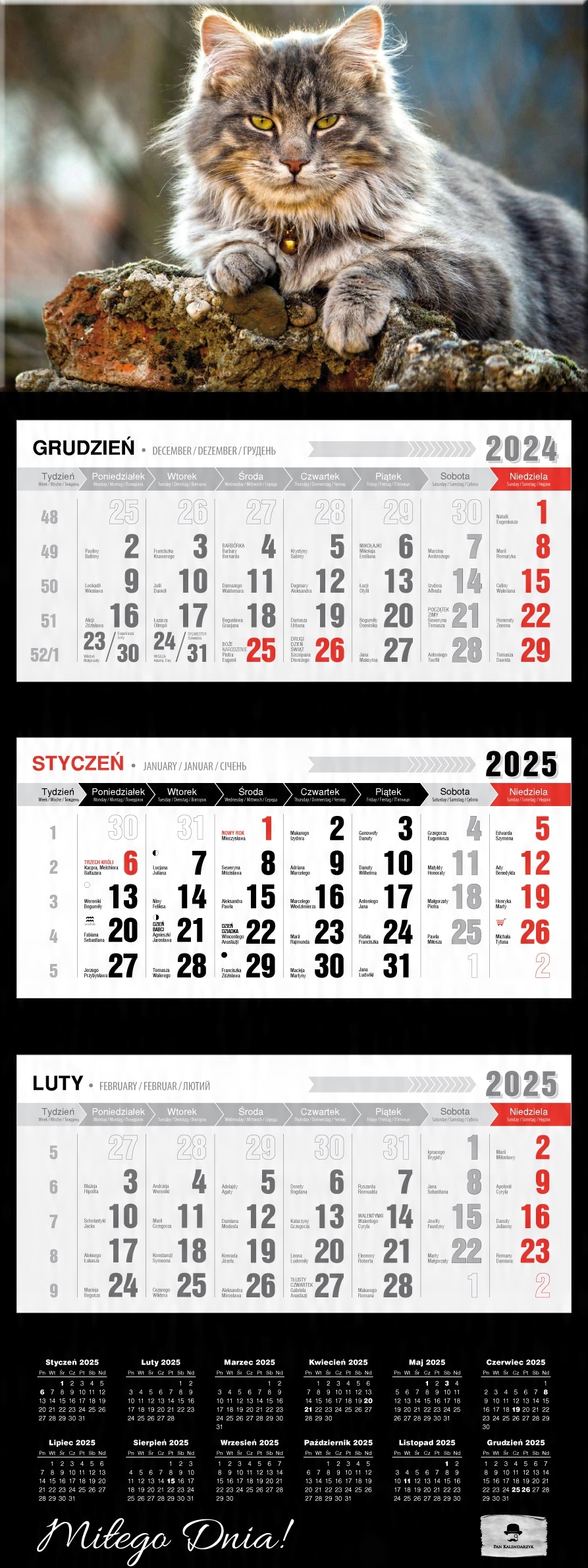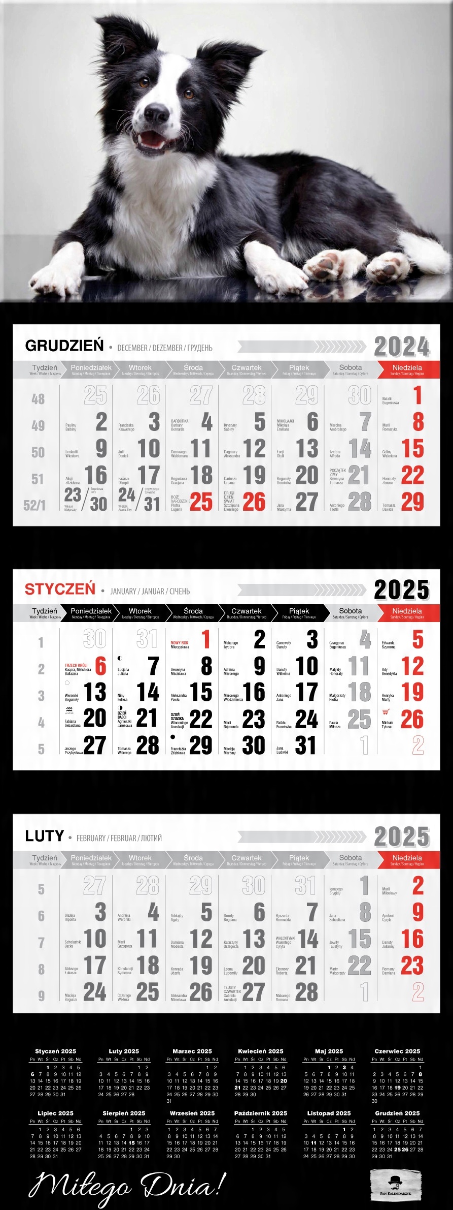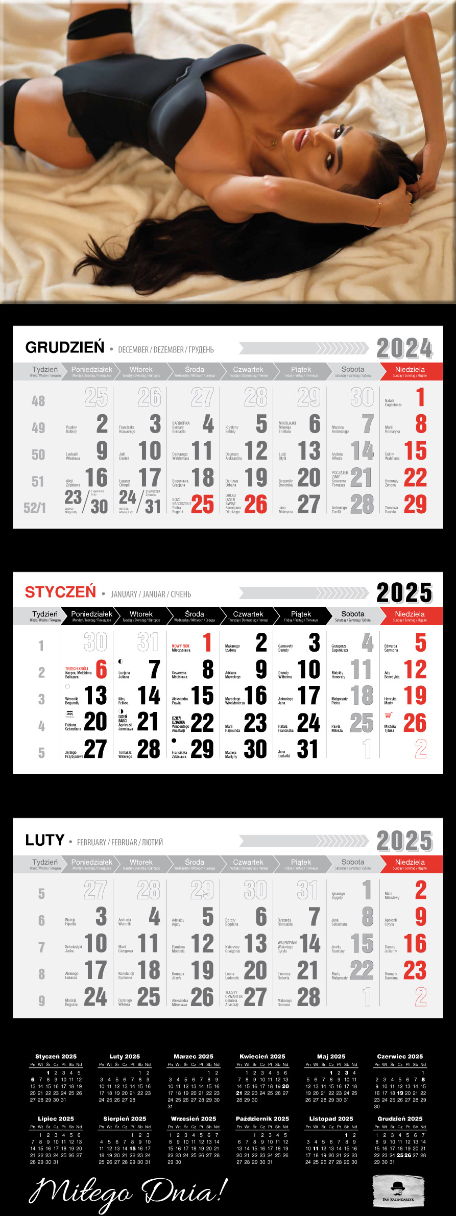 Tri -tree Calendar Bonus с выпуклой лакированной головой 2025 Гламур Black Hit