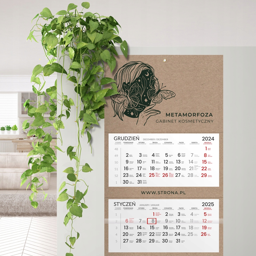✅ Чистый и разборчивый календарь b> напечатан на 90 г смещенной бумаге. Сделано в 3 отдельных 12-карт блоков. Имена месяцев и недель составляют на 3 языках (польский, английский, немецкий) с днем польского имени и праздниками