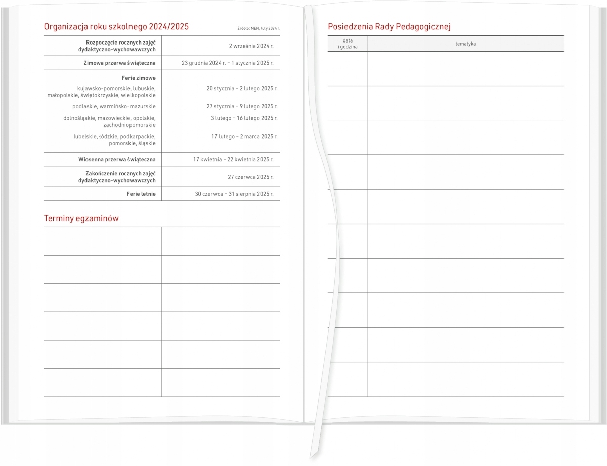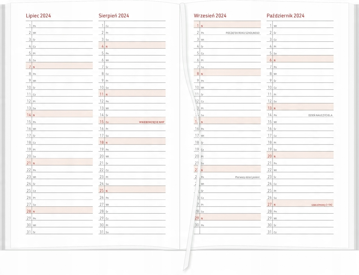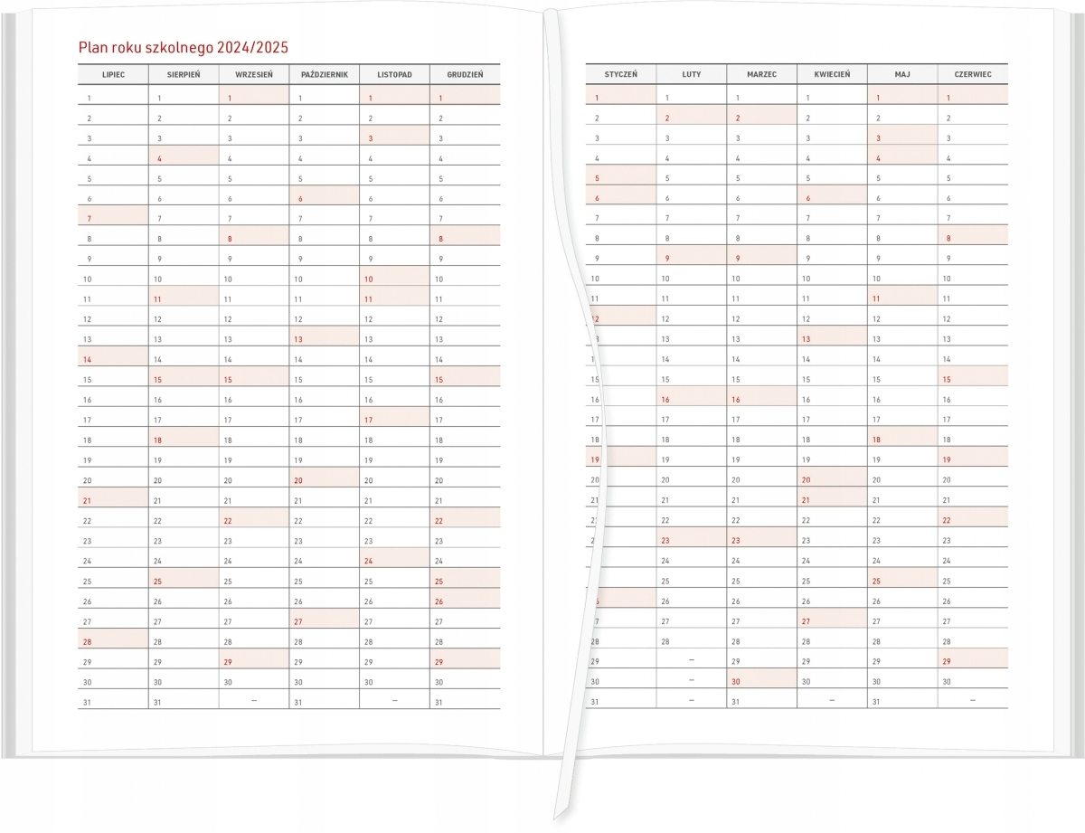 - планировщик на 2024/2025 учебный год (с июля 2024 по октябрь 2025) – последующие месяцы учебного года в колонках с местом для записей по каждому дню