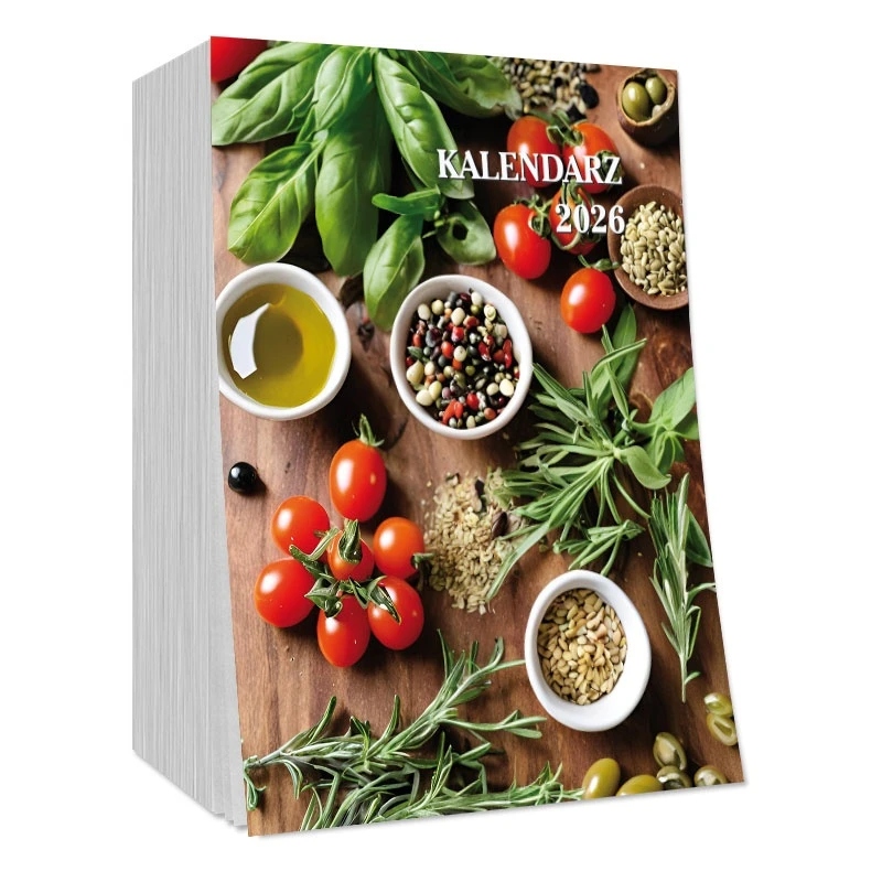 Календарь: на польском языке, двойные именины, восходы, закаты, фазы луны, знаки зодиака, нумерация дней, пословицы.