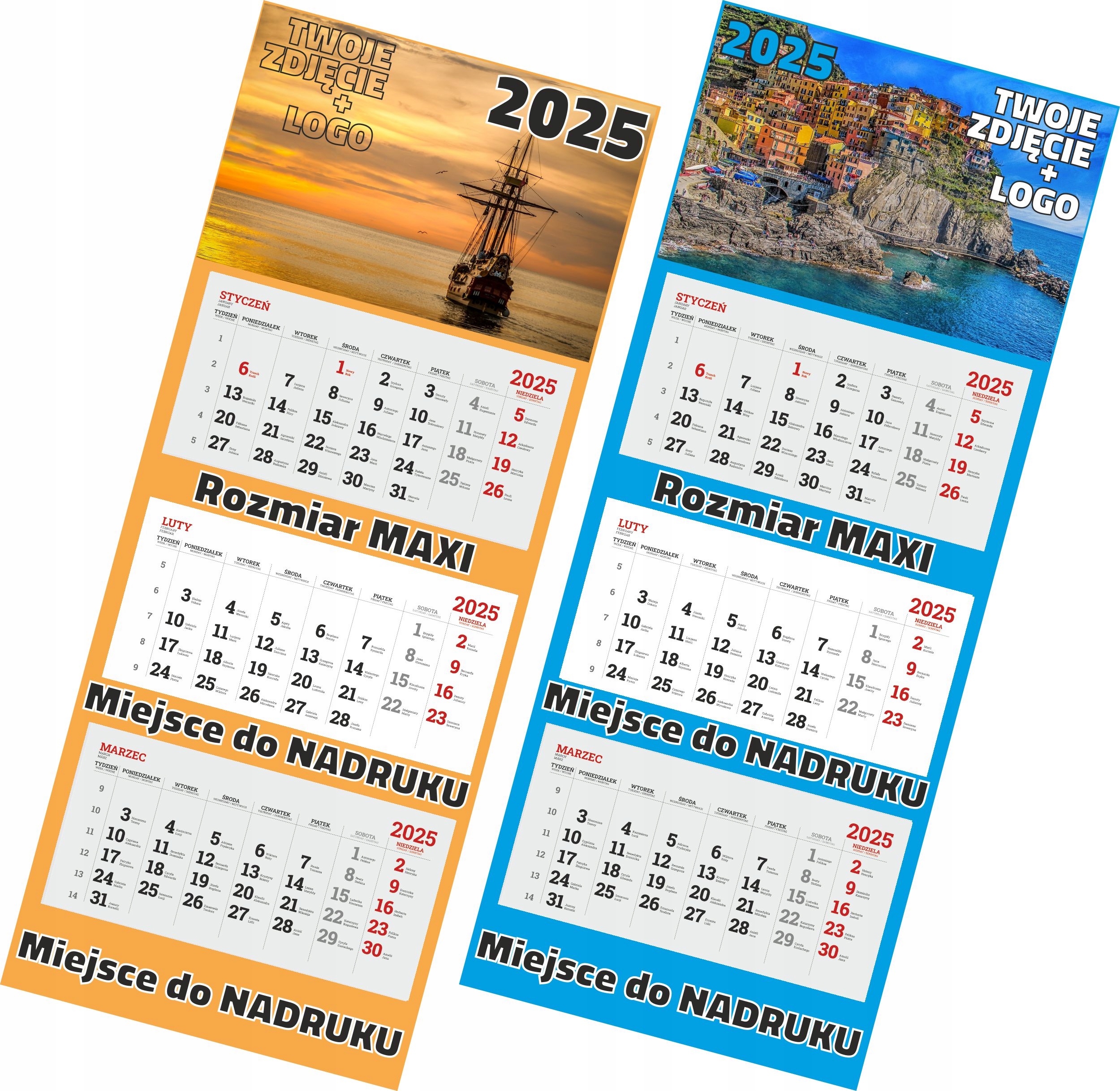 КАЛЕНДАРЬ НА ТРЕХ ДЕЛЕНИЙ 2025 - модель МАКСИ с ПЛОСКОЙ головкой - 25 штук