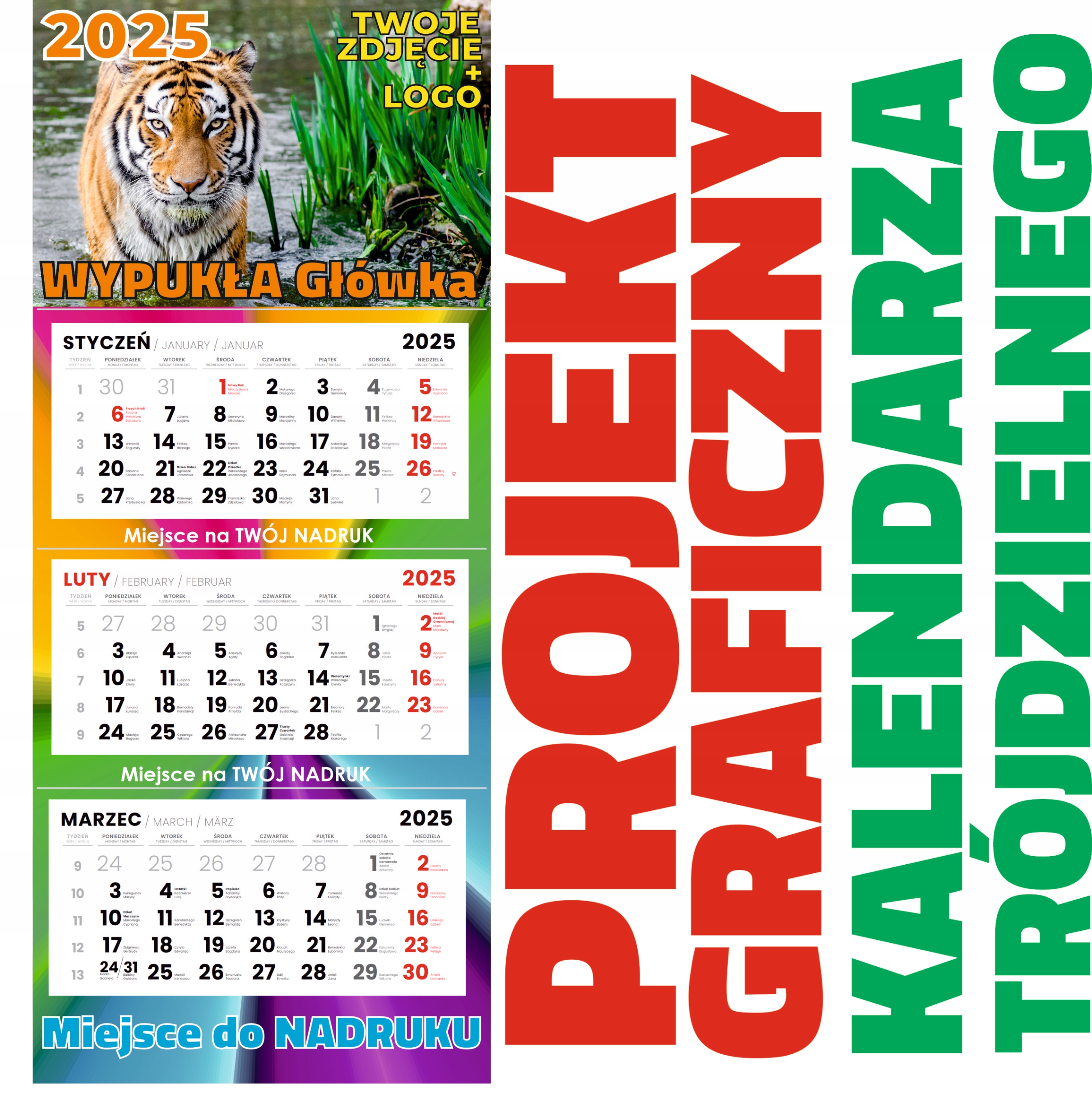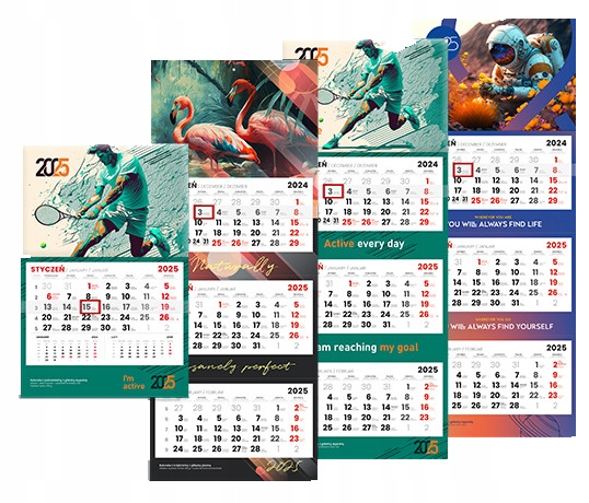 Среди других наших предложений вы можете приобрести услугу создания дизайна календаря из трех частей. Этот дизайн можно использовать для печати календарей, купленных по данному предложению. Мы обслуживаем наших клиентов комплексно – от дизайна до печати.