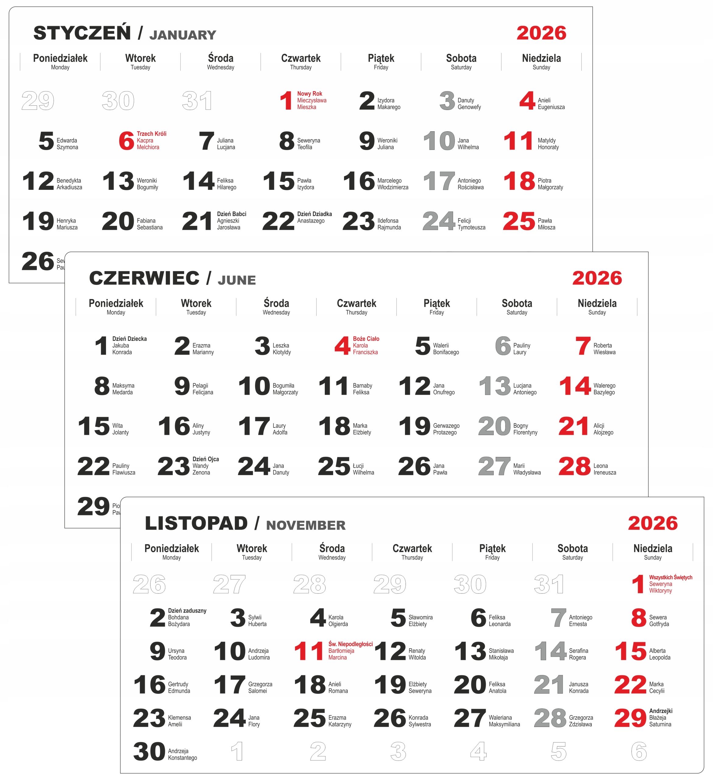 Kalendarium edytowalne 2026 - WZÓR 1, CDR, 14 kart