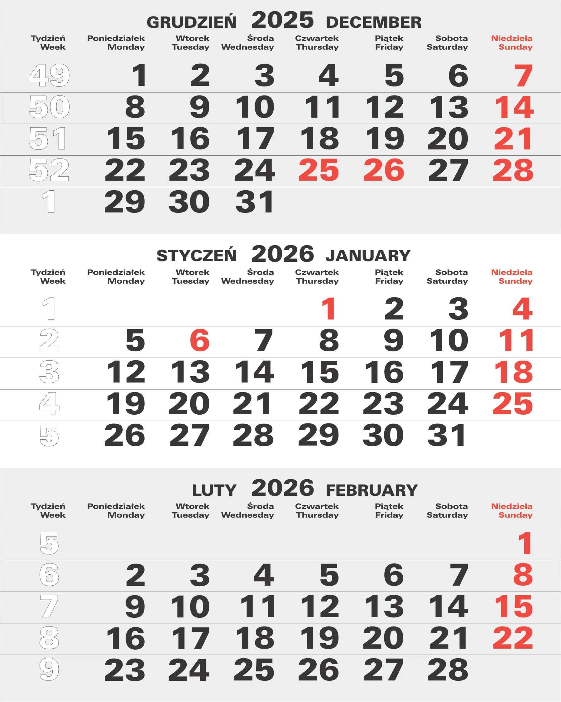 Kalendarium trójdzielne, jednodzielne 2026 - projekt: cdr, pdf